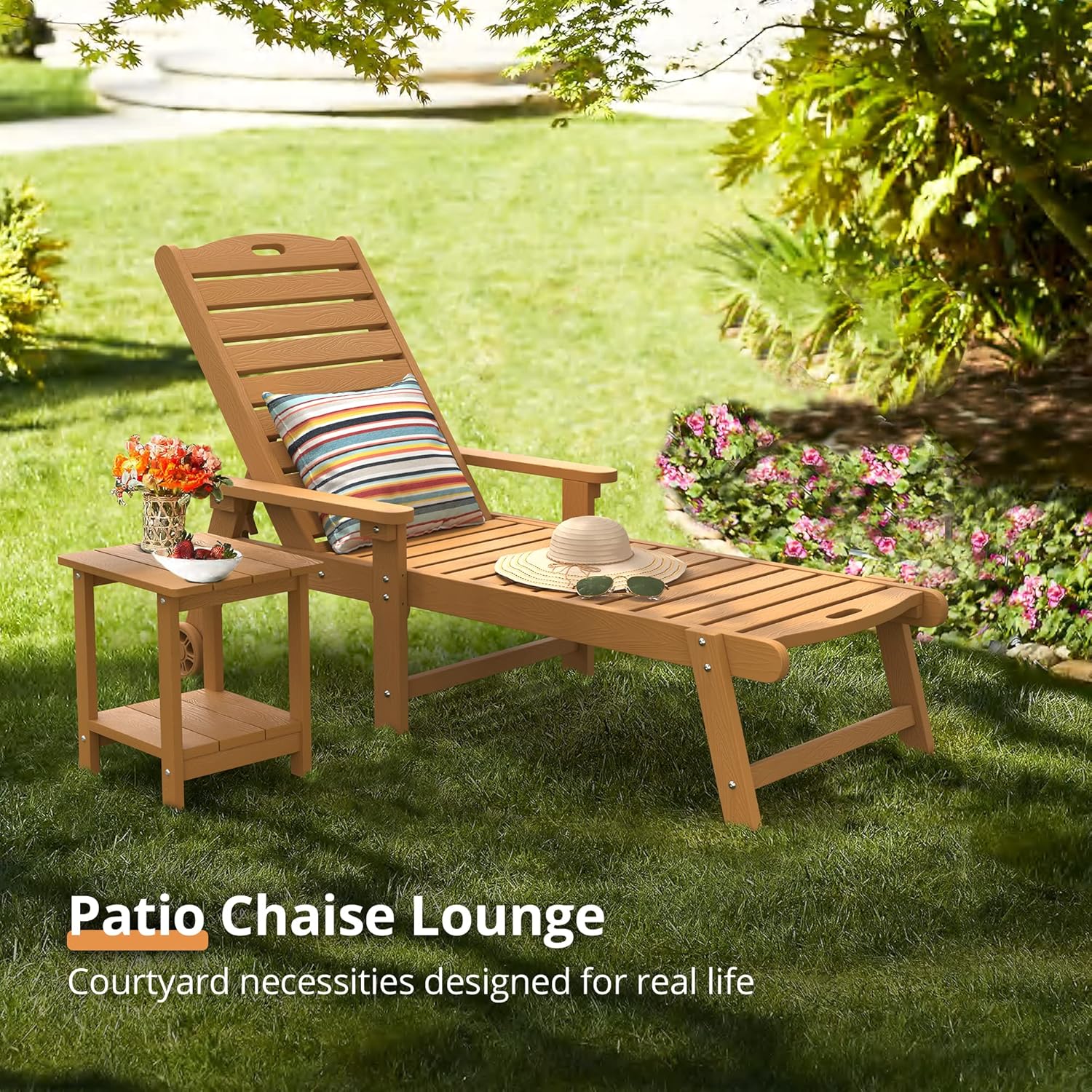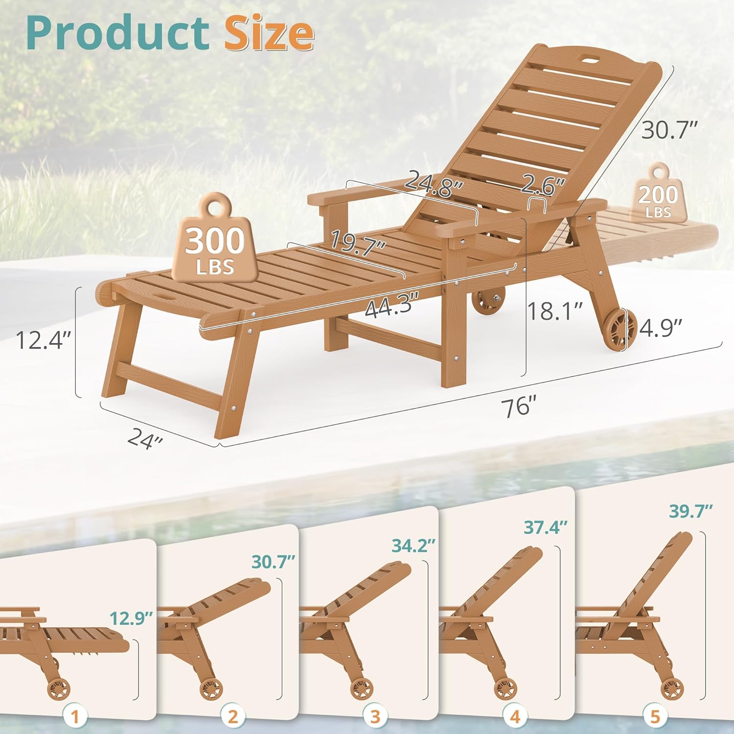 LUE BONA Outdoor Chaise Lounge Chairs Set of 4, HDPS Chaise Lounger, 5 Positions Adjustable Lounge Chairs, Pool Lounge Chair with Wheels for Poolside, 3 Year Warranty, Teak Color