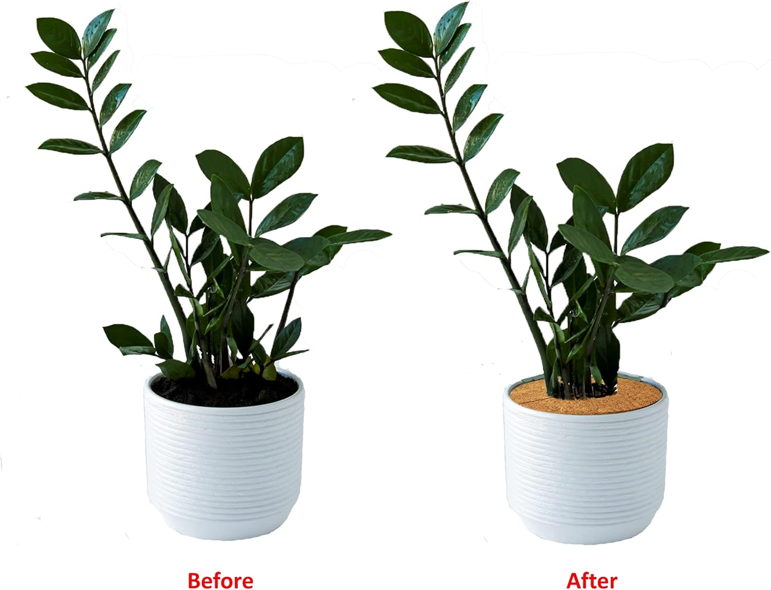 - 100% Natural Coconut Fiber Mulch Discs: Made from biodegradable coconut coir, these 18-inch round mats help retain soil moisture, suppress weeds, and regulate temperature around plants.
