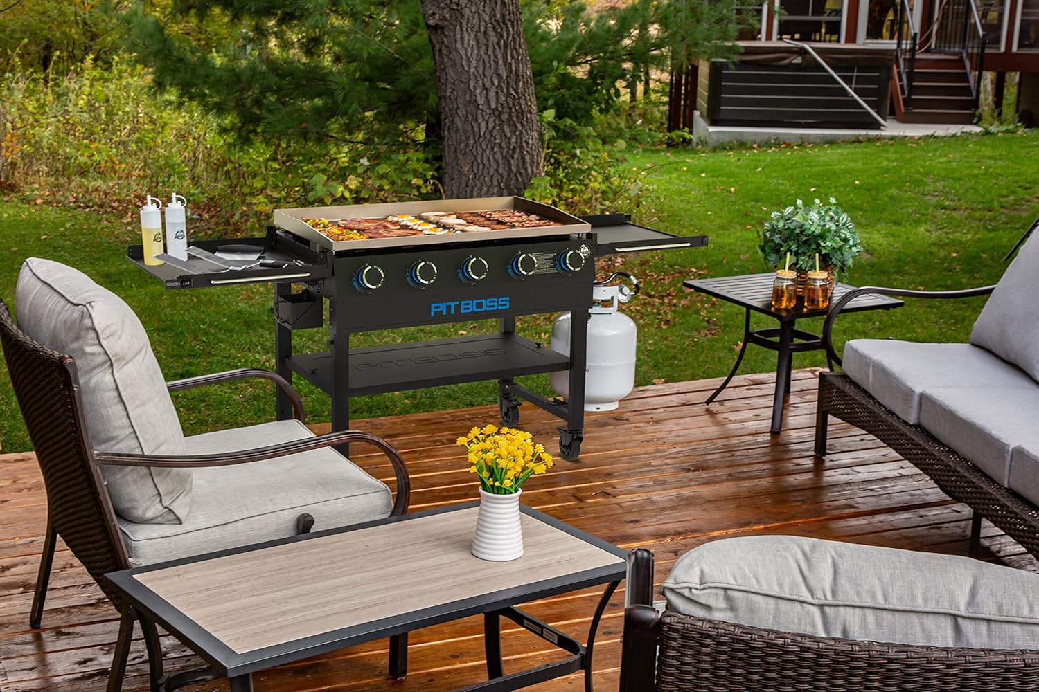 Pit Boss 11004 5-Burner with Folding Shelves Griddle, Black