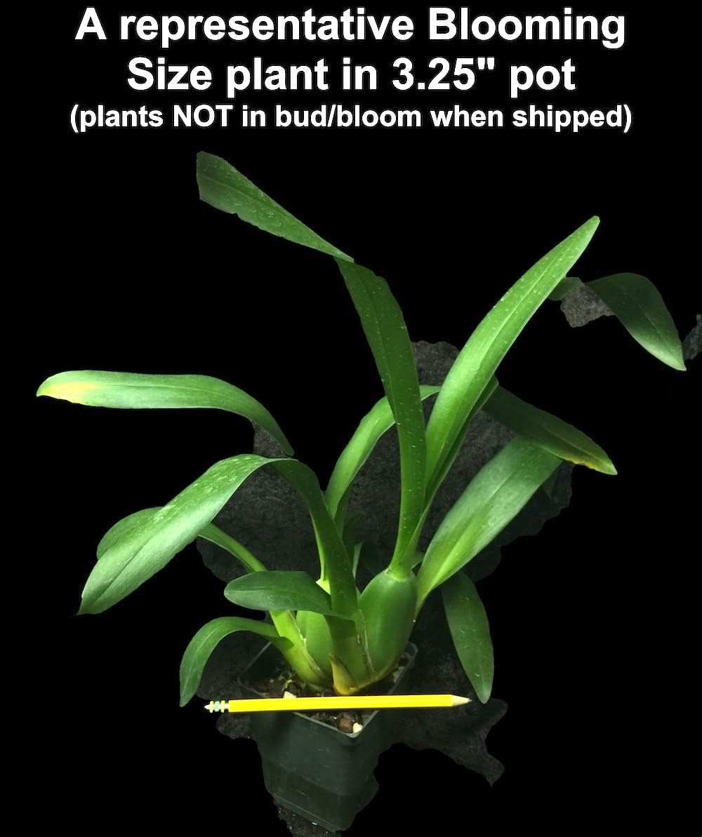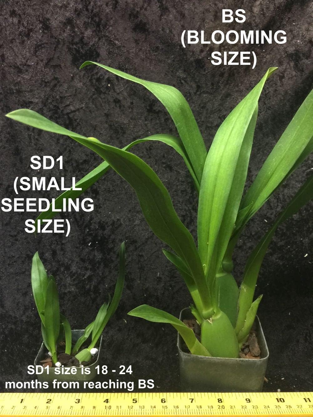 - IMPORTANT NOTE: plants are NOT IN BUD/BLOOM when shipped. PLEASE look at all photos so you know the condition/size of plants offered. SD2 size plants (large seedlings in a 2.25-inch pot) are about two years from reaching Blooming Size. NBS (Near Blooming Size) plants are about 12 - 18 months from Blooming Size. BS (Blooming Size) plants are of a size capable of blooming at the next blooming season.