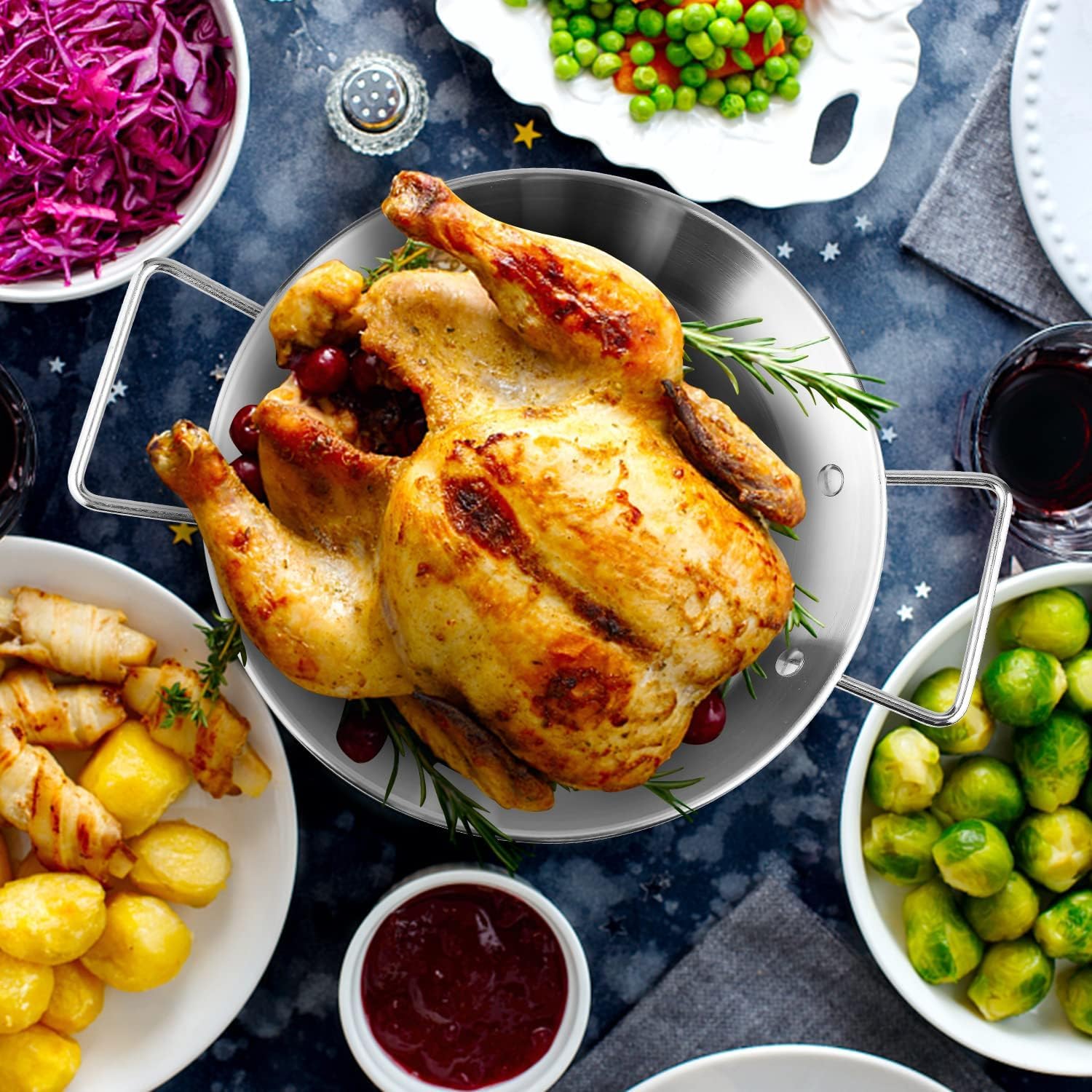- 【3 Adjustable Spikes for Multi-Size Meats & Versatile Cooking】Equipped with 3 detachable spikes (8"/10"/12"), this vertical rotisserie holds small turkey, chicken, pork, steak, or large cuts securely. Sharp tips pierce meat effortlessly, and the heavy-duty base fits most grills, ovens, or outdoor smokers. Ideal for backyard parties, camping trips, and holiday feasts!