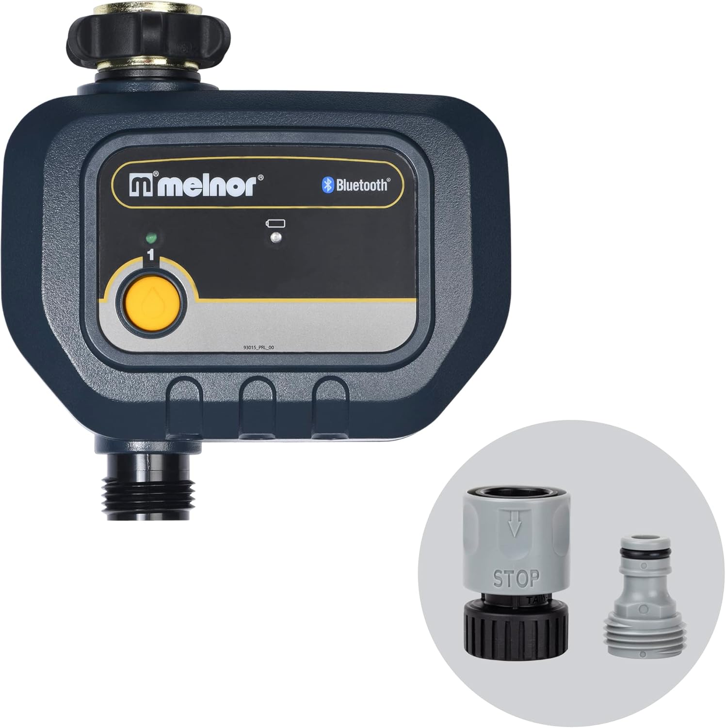 Melnor 65182AMZ Bluetooth Hose Timer, 1-Zone Programmable Watering Timer, Quick Connect Bundle, Black, Yellow