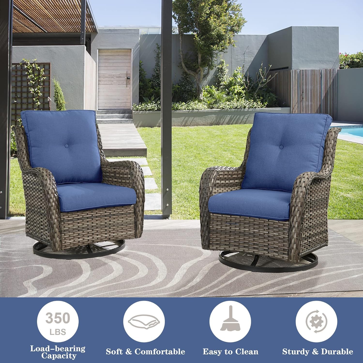 - 【Comfortable And Easy To Clean】Each swivel glider chair and wicker sofa in this outdoor furniture set comes with a 4-inch thick foam seat cushion and an 8-inch thick cotton back cushion, which is ergonomic and enhances the overall comfort of the chair. The patio wicker chair cushion cover is made of outdoor professional olefin fabric which is water resistant, and the seat cushion is equipped with zippers that are removable and easy to clean.
