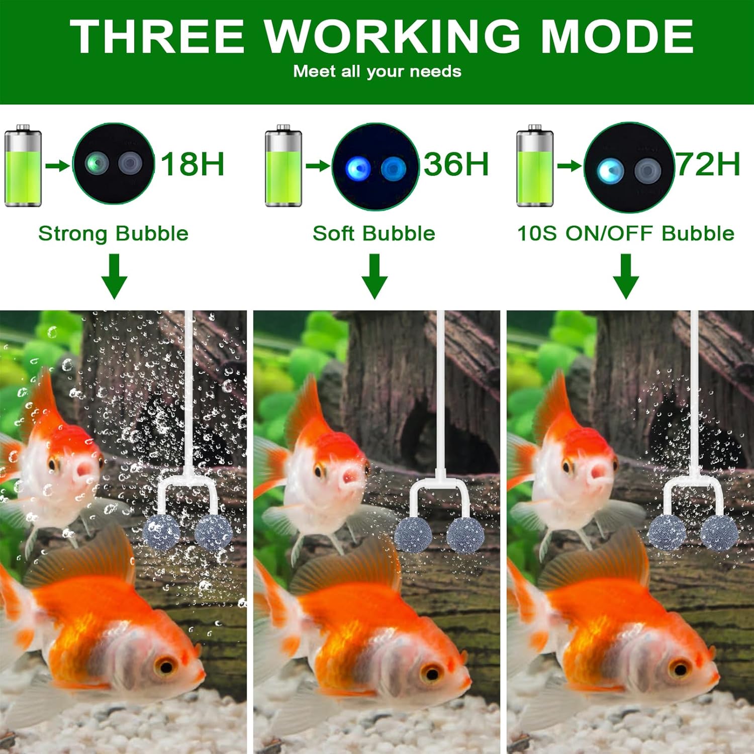 - 【3 Working Modes and Bubble Regulator】The solar pond aerators comes with 3 working modes: Strong bubble mode(18H) / Soft bubble mode(36H) / 10S ON/OFF mode(36H) - allowing you to customize the oxygen supply to your fish tank. Equipped with air bubble regulator to ensure even and universal air distribution.
