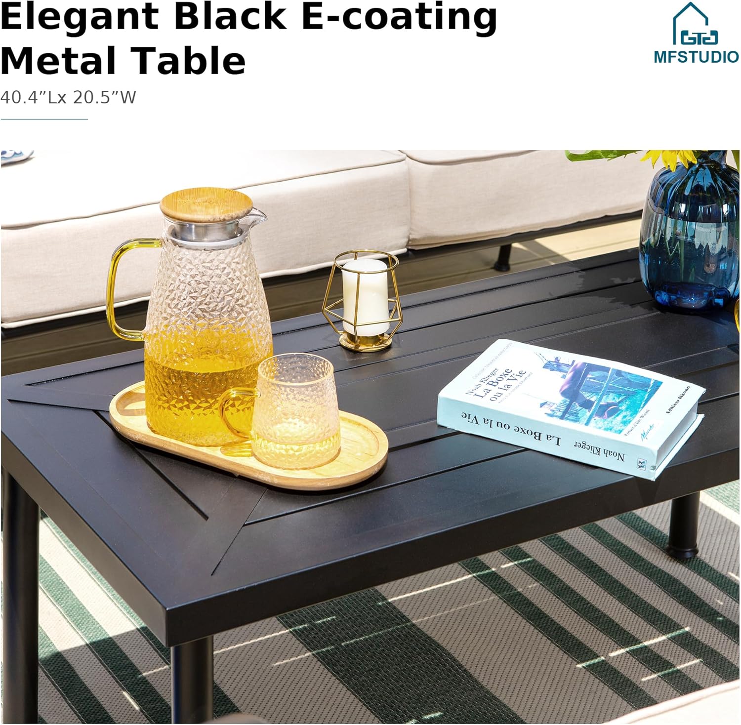 MFSTUDIO 7 Seats Large Metal Patio Conversation Sets, 5 Pieces Outdoor Furniture Sofa with 2 Fixed Chairs, 1 Sofa(3-seat), 1 Loveseat and Table for Outside Balcony Backyard Poolside