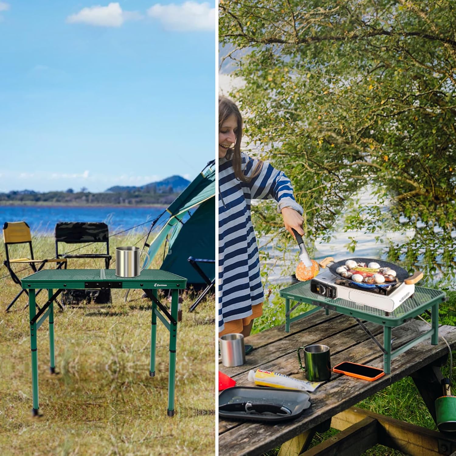 - [Adjustable Grill Table]The folding camping table allows you to adjust the height of the camping table from an initial height of 10.6 inches to a height of 22 inches,providing a perfect surface for you to picnic on the grass or grill standing up