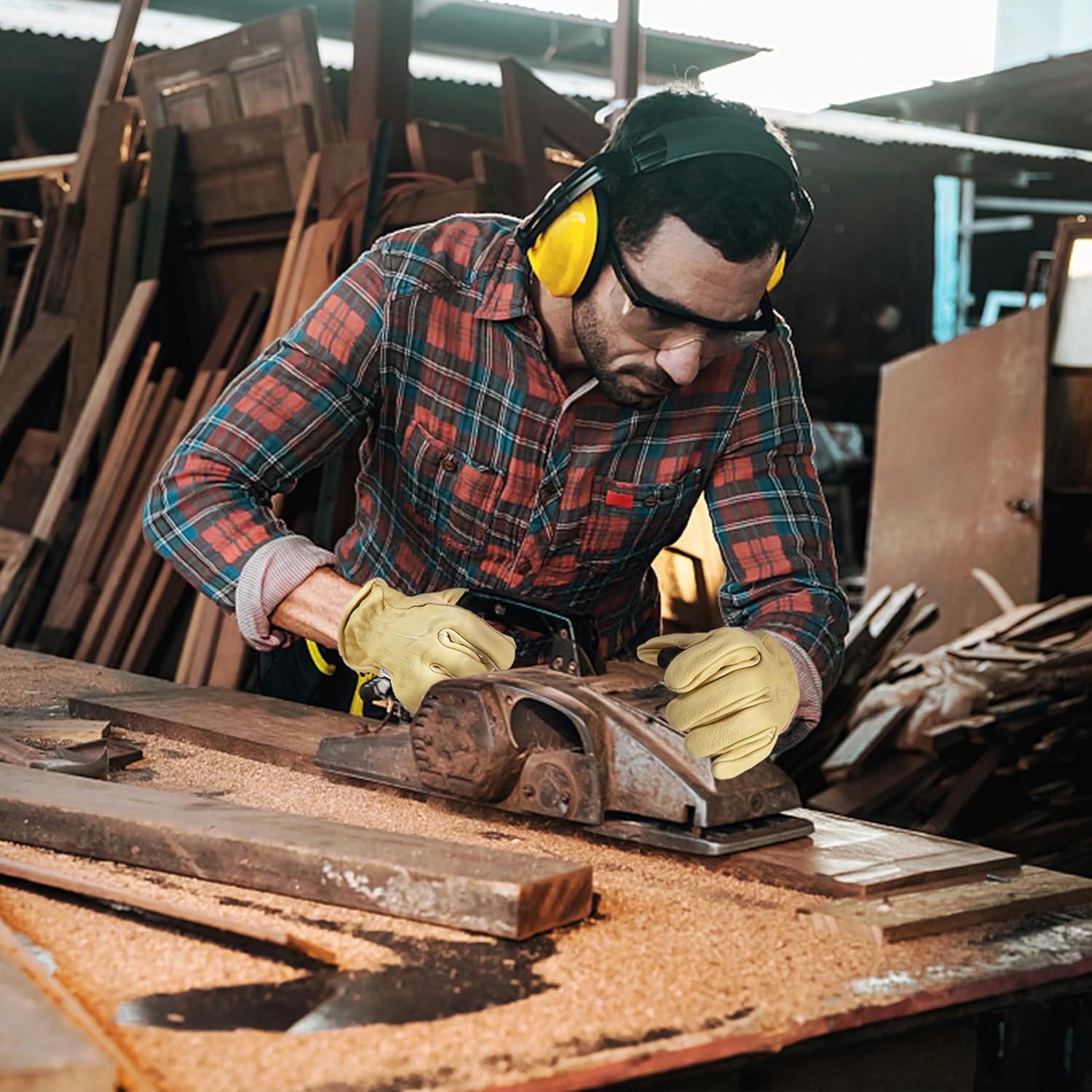 - MULTI FUNCTIONAL: Perfect Fit for Men & Women, these cowhide work gloves ideal for Construction, Yardwork, Driver, Gardening, Farming, Landscaping, DIY projects,Wood cutting, etc..