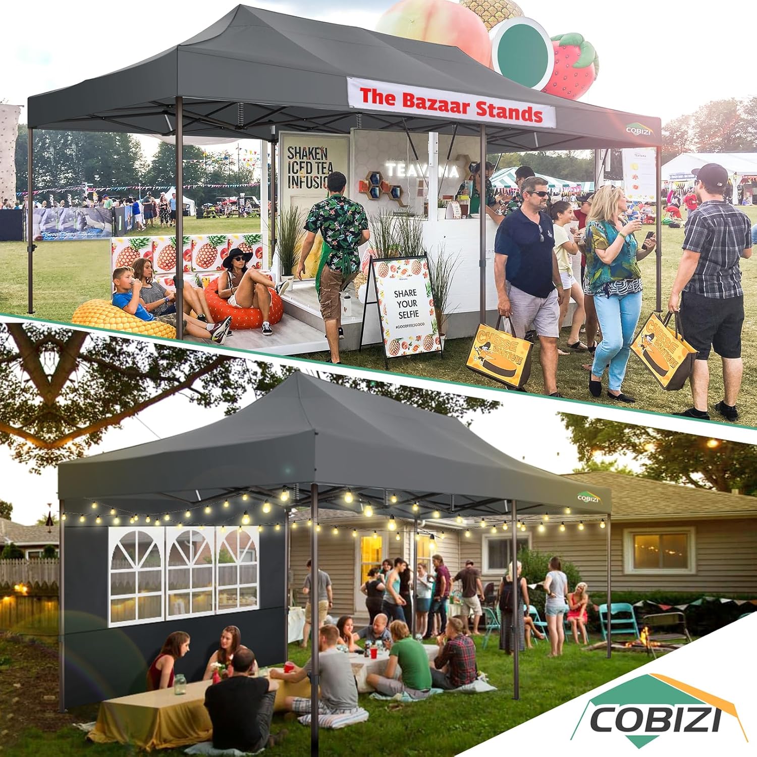 COBIZI 10x20 Pop Up Canopy Tent Heavy Duty with 6 Removable Sidewalls, Commercial Heavy Duty Pop Up Tent for Parties All Weather Waterproof and UV 50+ Wedding Tent with Roller Bag(Legs Upgraded)