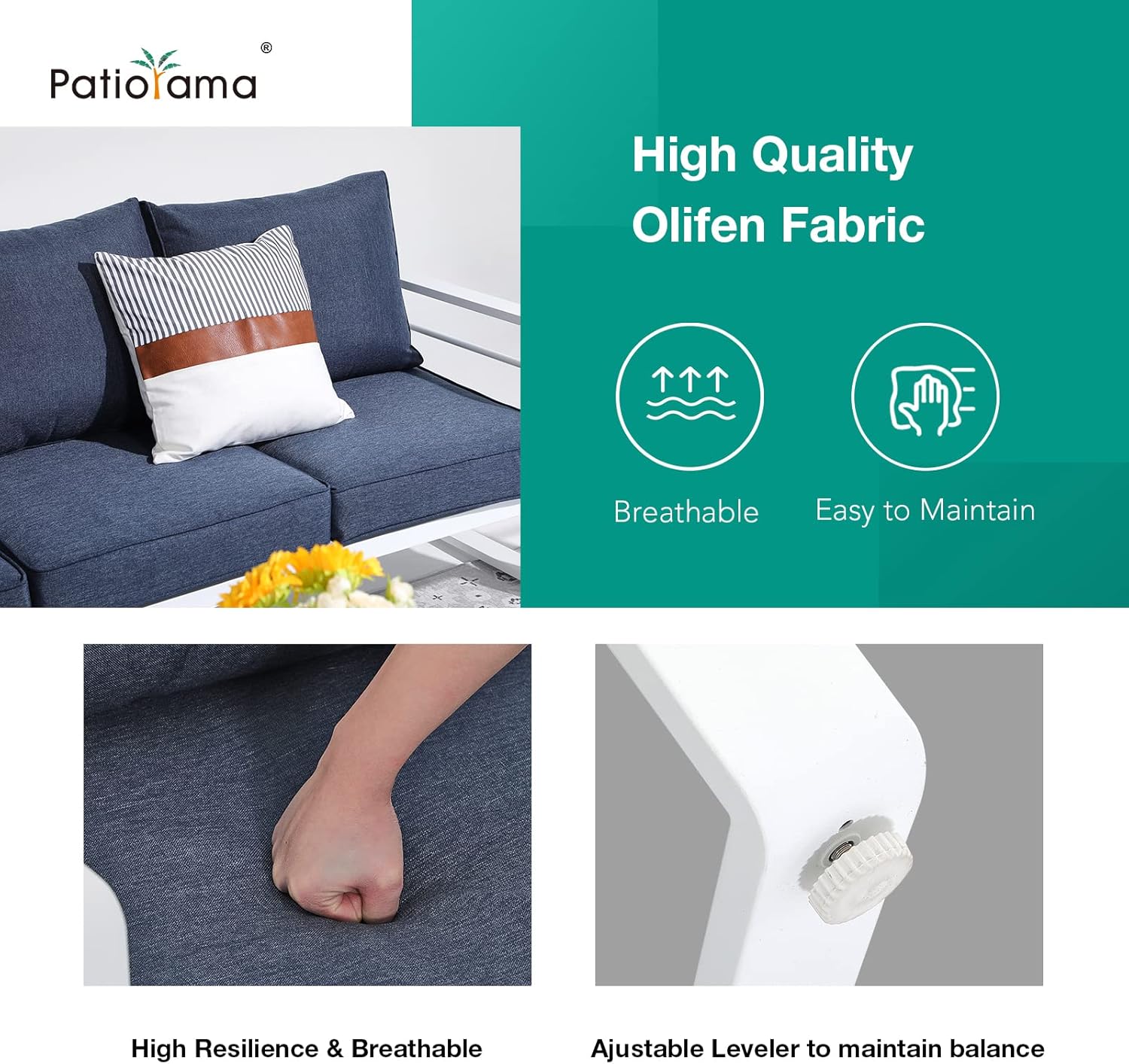 - [Superior Olefin Fabric]: The superior OLEFIN fabric, used on all cushions with extra binding design, adds a hint of outdoor luxury that will greet guests with a preview of your personal style and hospitality. The 4-in thick foam cushions with removable and cleanable cushion covers ensure maximum comfort while maintaining their original full shape. All materials are treated to resist weather, rust, and UV fading throughout the year and easy to maintain. (Note: Cushions are non-waterproof.)