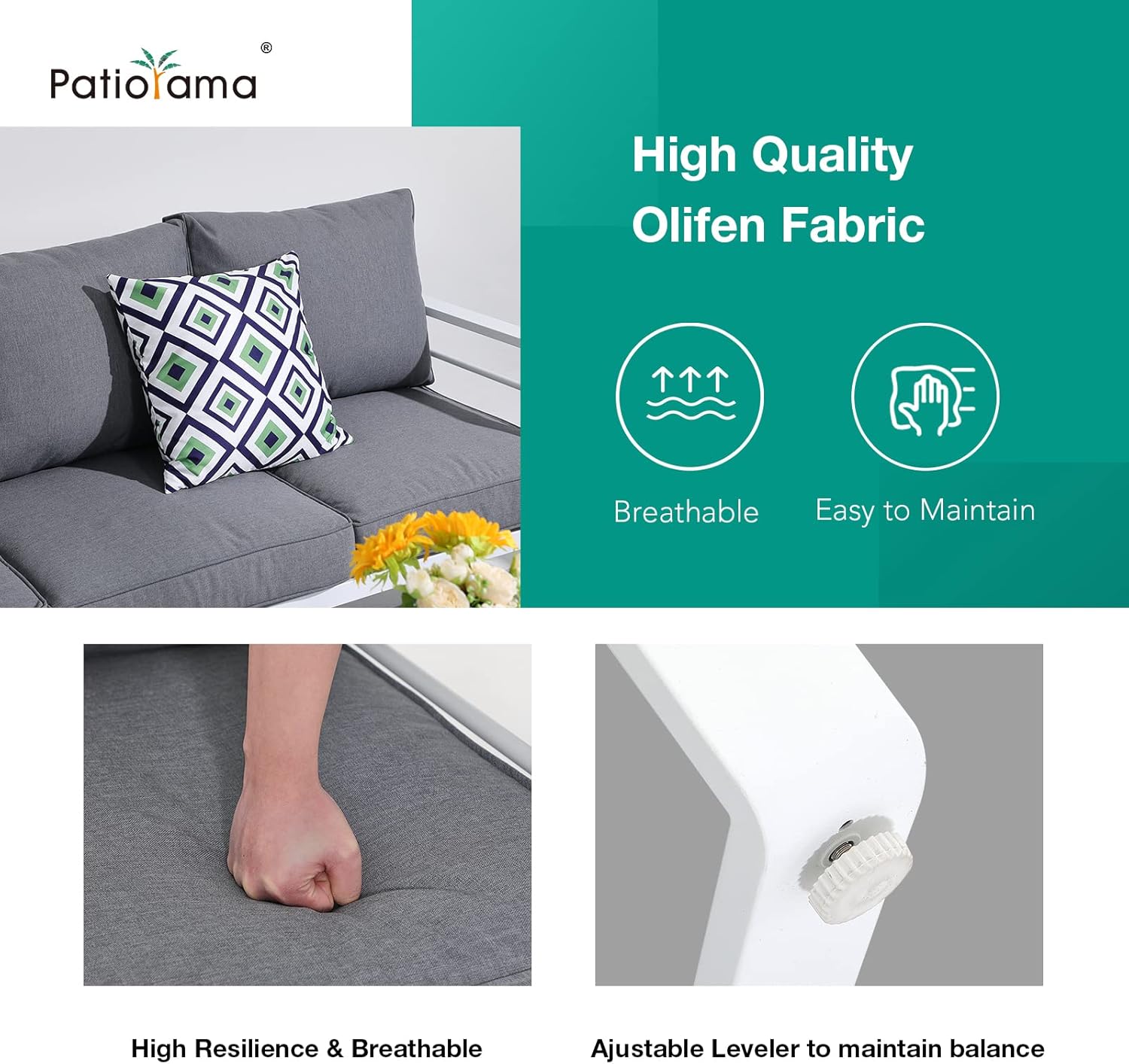 Patiorama Aluminum Patio Furniture Set, Outdoor Patio Loveseat, 2 Seat Sofa Couch, All Weather White Metal Chair with Olefin Cushion, Deep Seating, 600 lbs Capacity, Deck, Garden-Grey Cushion