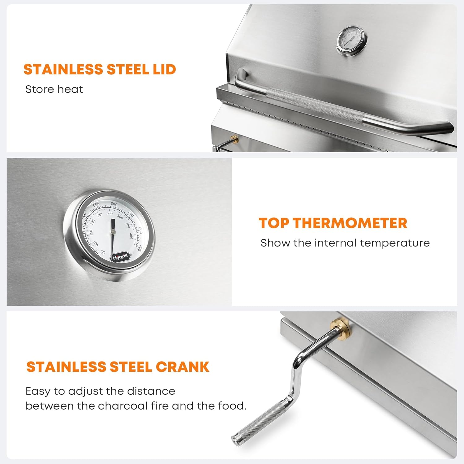 - 【Adjustable Charcoal Chamber】The large charcoal bed can be adjusted in height to meet your needs for different cooking time;