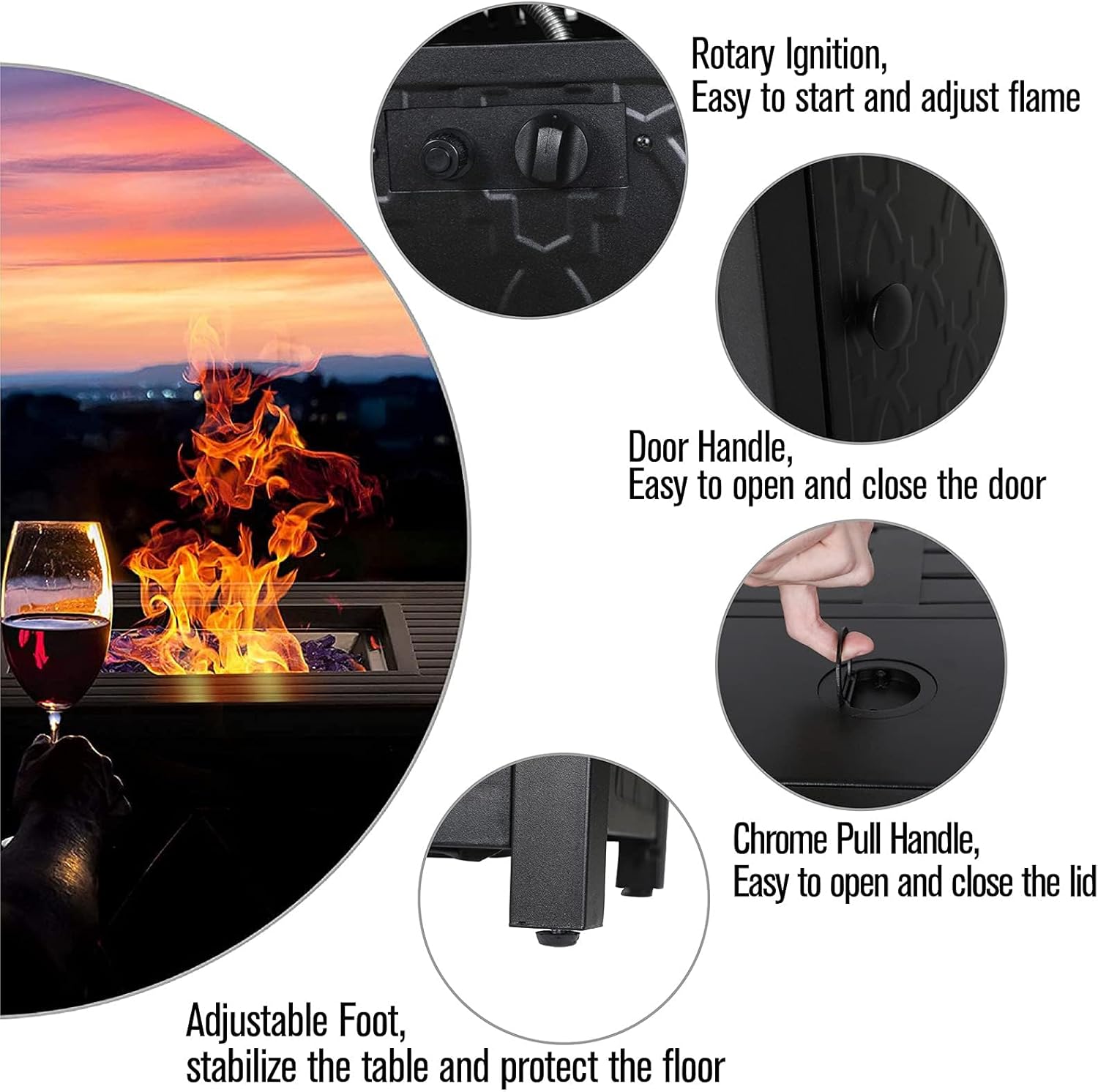 - Safe & Great Heat Output: Conforming to the CSA certification requirements, this product has been issued a CSA certificate. This outdoor fire pit use propane gas to support stable and clean burning. Our gas fire pit table is 50,000 BTU heat output, providing ample warmth and creating a warm and romantic bonfire atmosphere. When the fire is extinguished during combustion, the gas will be cut off automatically within 1 minute to prevent gas leakage and ensure safety
