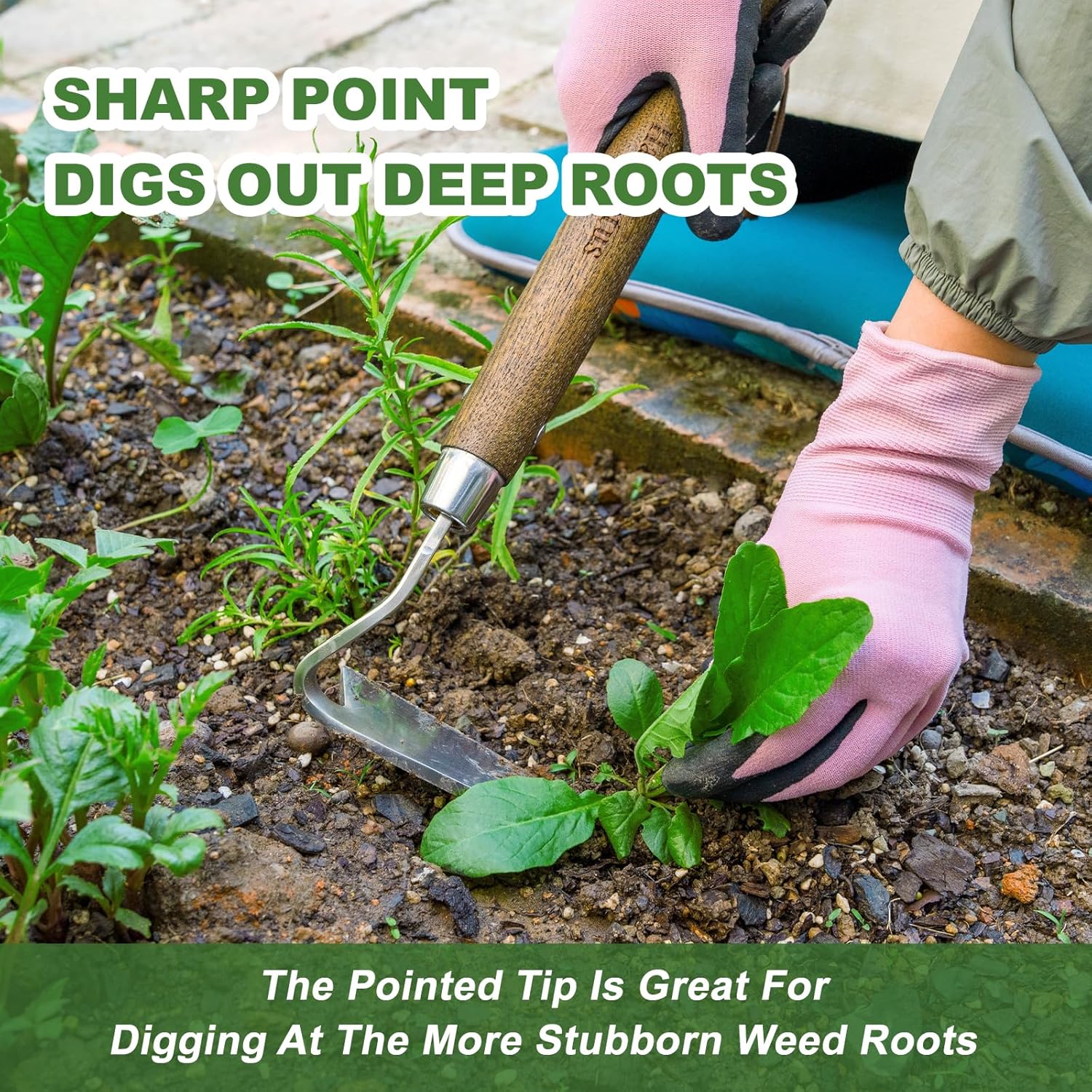 - 【Loosen The Soil Effortlessly】The japanese weeder with a sharp point tip makes it easy to dig and is used for breaking up the soil, mixing in compost to small areas, helping loosen the soil around weeds, and even digging when the dirt is compacted mess.