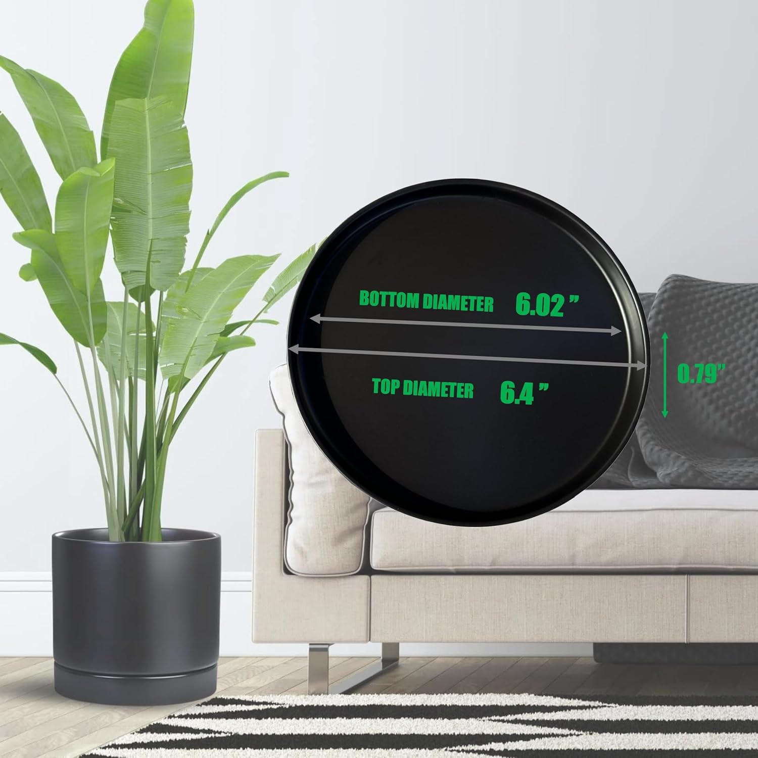 - Multi-size plant dish : Plant Flower pot saucers, offers a variety of small, large, extra large size plate plant saucer and flowerpot tray color, 4/4.7/5/5.6/6/6.4/6.6/7/8.5/9/10/11/12/12.21 inch plant saucers, from small to large outdoor indoor plants garden. Please compare the size of the plant bottom of the pot with the size of our plant saucer before purchasing to ensure that you can match the right pot, and the large size plant saucer pot tray is compatible with the small size pot
