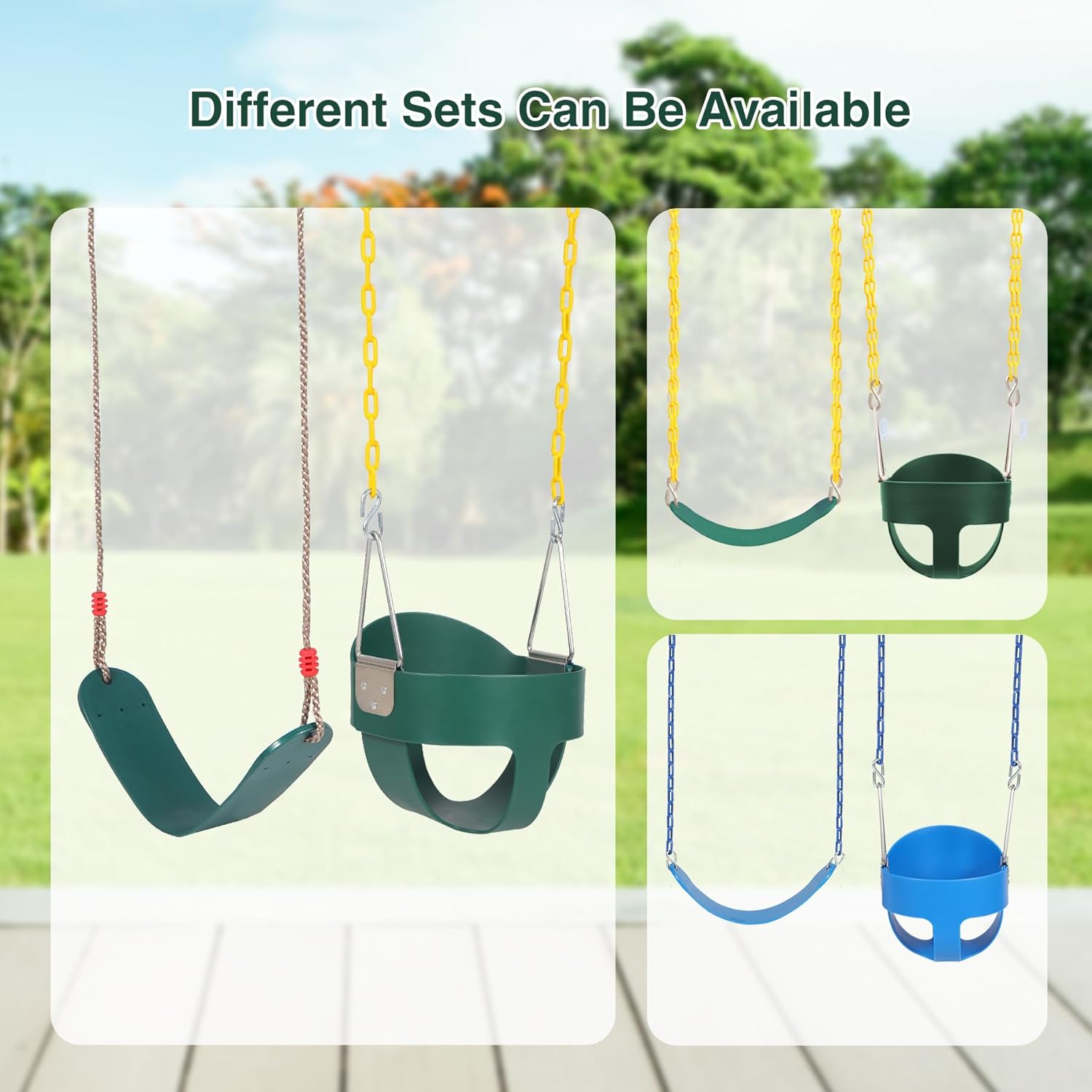 RedSwing Toddler Swing Set, Heavy Duty High Back Full Bucket Swing with Belt Swings Seat Combo Pack for Swingset, Tree Straps and 4 Hooks Included, Green