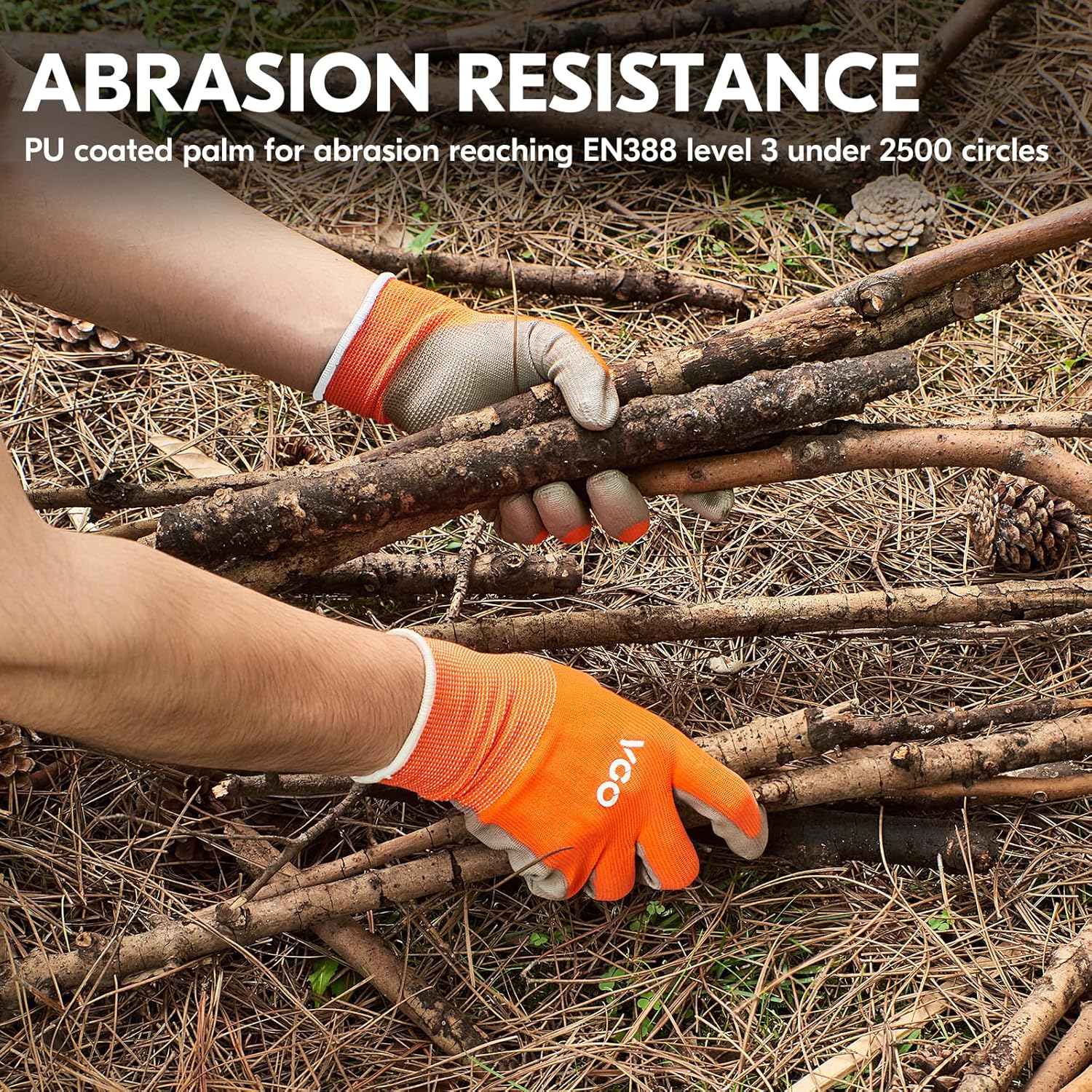 Vgo... 15-Pairs Safety Work Gloves, Gardening Gloves, Polyurethane Coated, Dipping Gloves, Latex Free (Size M,Orange, PU2103)