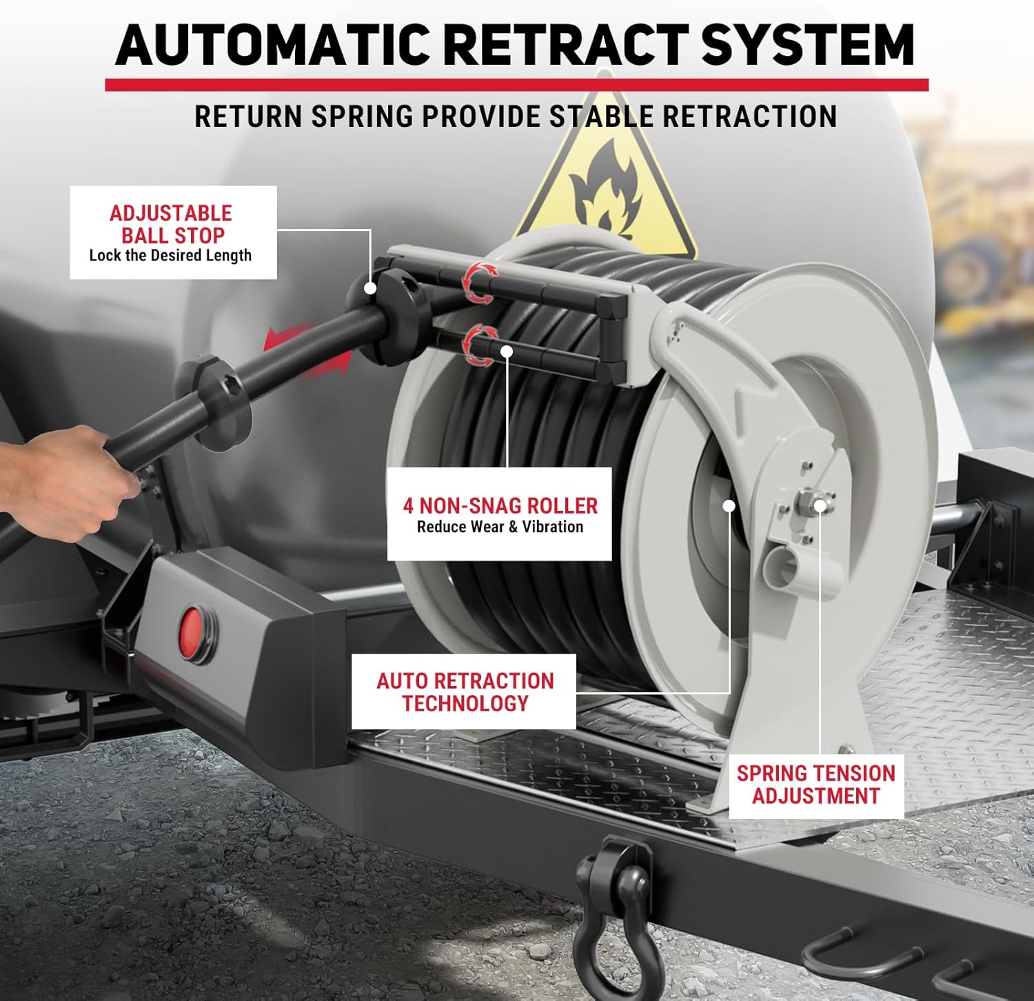 - Easy Maintenance: Fuel hose reel for compatibility with diesel fuel, ensuring smooth, without fuel leaking. Including a 360° rotating connection seal to prevent the hose from twisting when refueling, and ensure that the fuel nozzle is not moving and does not easy to leak. The reel is well-suited to all industries including Agriculture, Industrial, mining, and Transportation. You can contact us at any time and we can help you solve all product problems