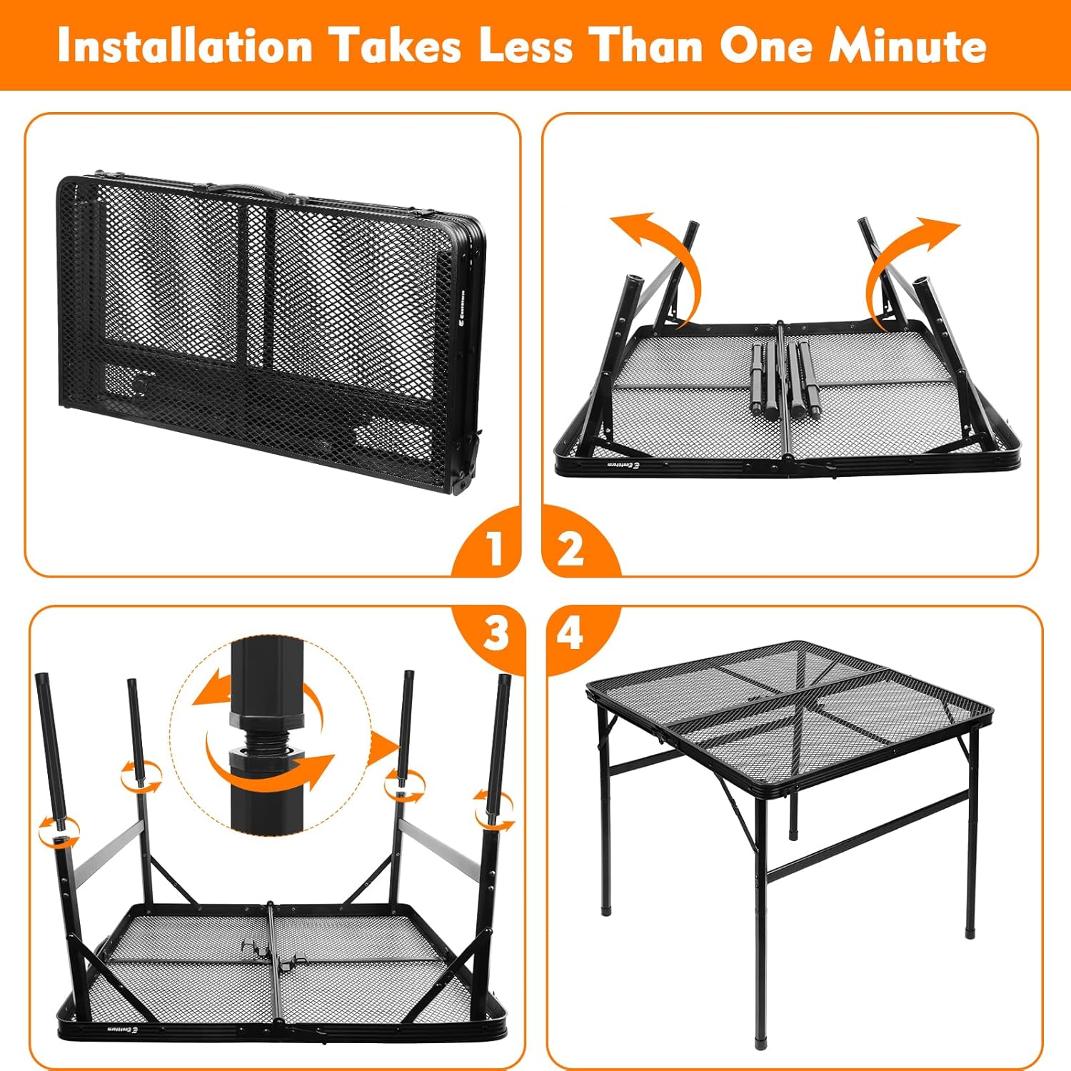 - [Robust and Sturdy] The folding table is made of high-quality aluminum alloy, ensuring its sturdiness and durability. The table top is designed with a metal mesh surface and has been treated with a thickened paint coating, allowing it to withstand prolonged exposure to high temperatures. When stored in the garden, it is resistant to rain and snow, as the limited contact area with the table surface minimizes the risk of staining and rusting