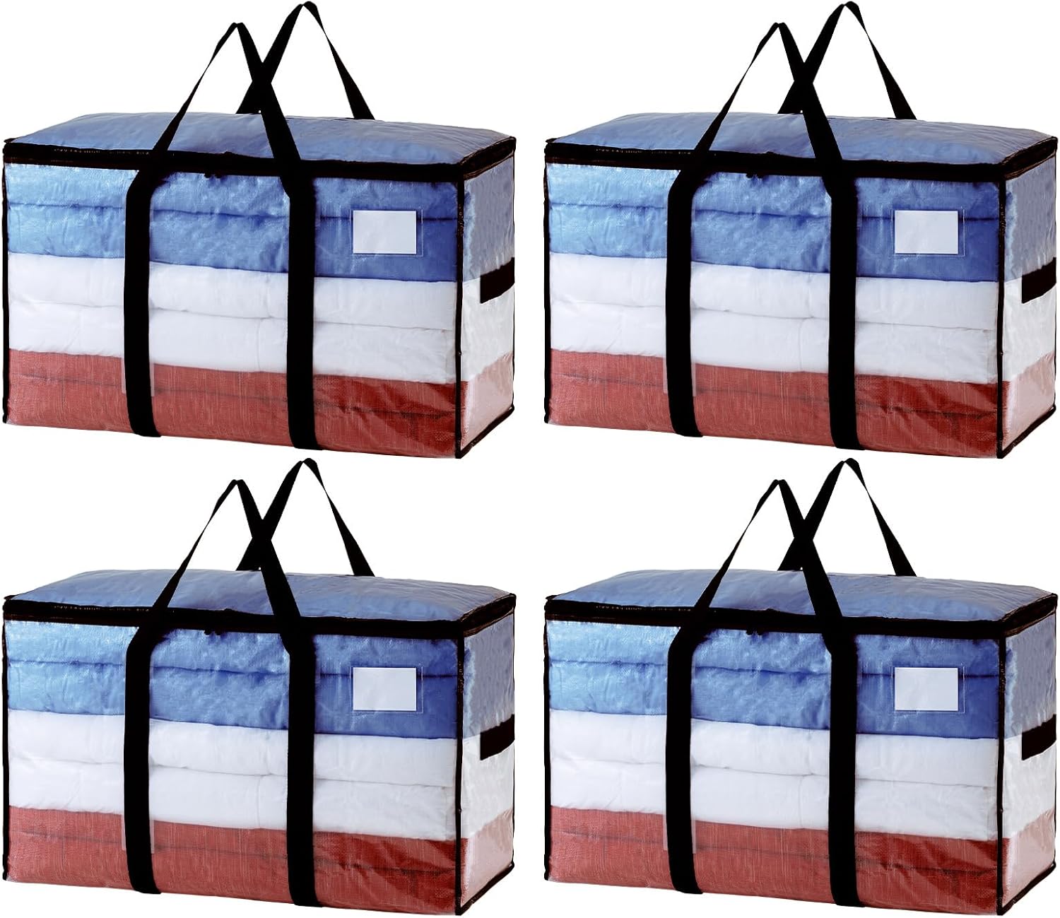 TAILI Extra Large Moving Bags, 4 Pack Clear Heavy Duty Totes For Storage with Visible Window, Wrap Around Handles, Storage Bags for Space Saving, Alternative to Moving Boxes