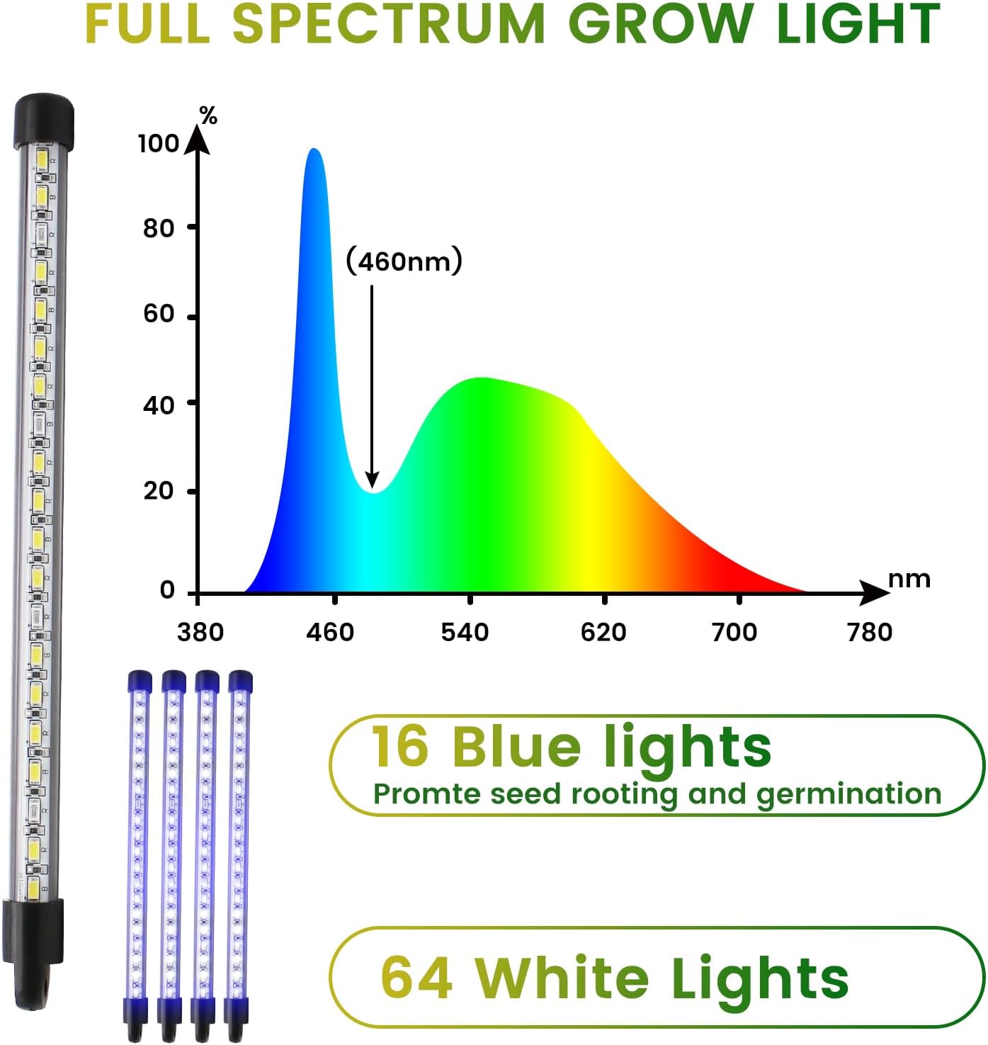 - 【Full-Spectrum LED Grow Light】Each seed starter trays has 2 plant grow light; and each grow light is composed of Red + Blue lamp beads, which can simulate natural sunlight to promote photosynthesis and then help seed growing