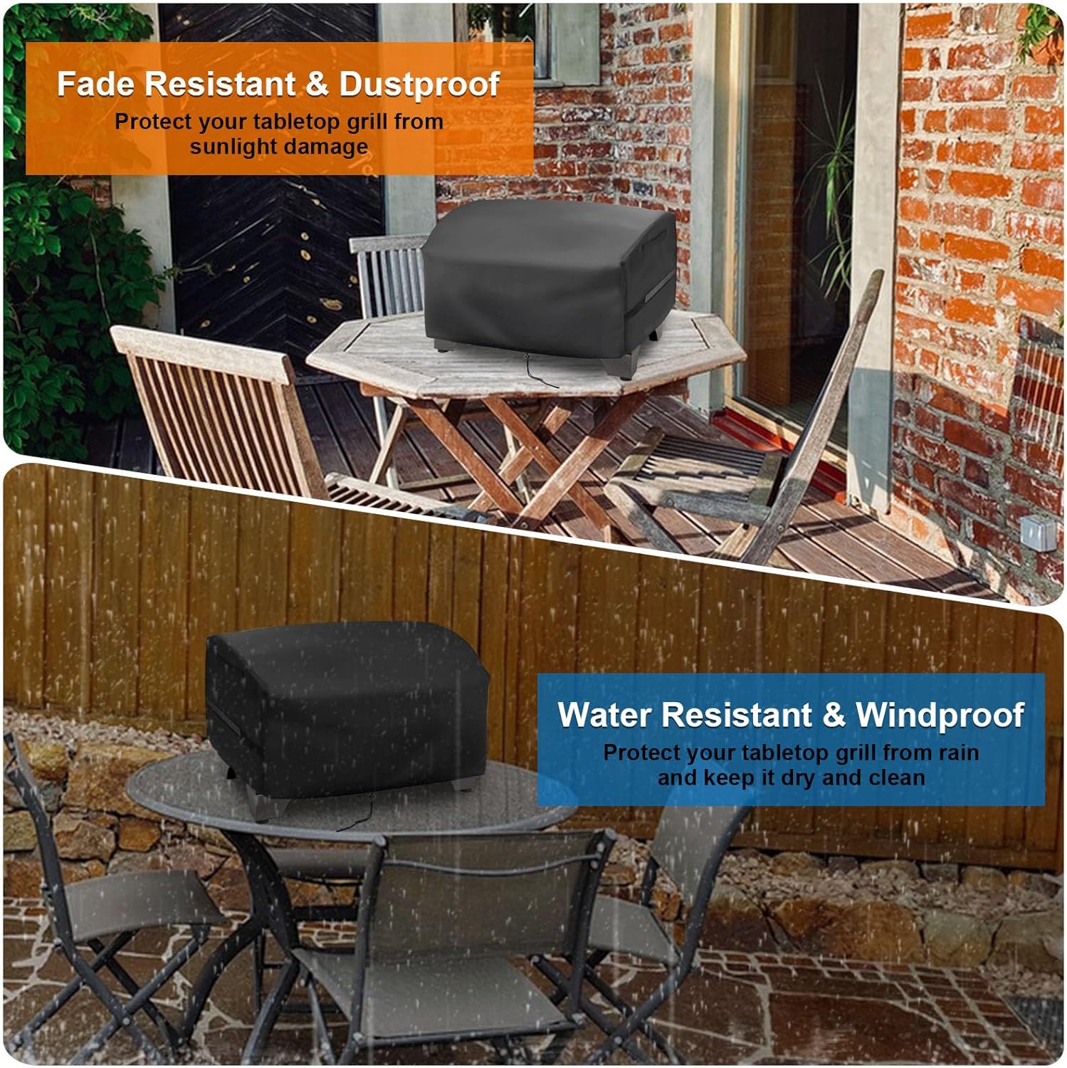 - EASY TO CLEAN: Easy to put on and take off, easy to fold up and clean. You can reuse the outdoor grill cover simply by washing it with water or wipe it with a damp cloth.