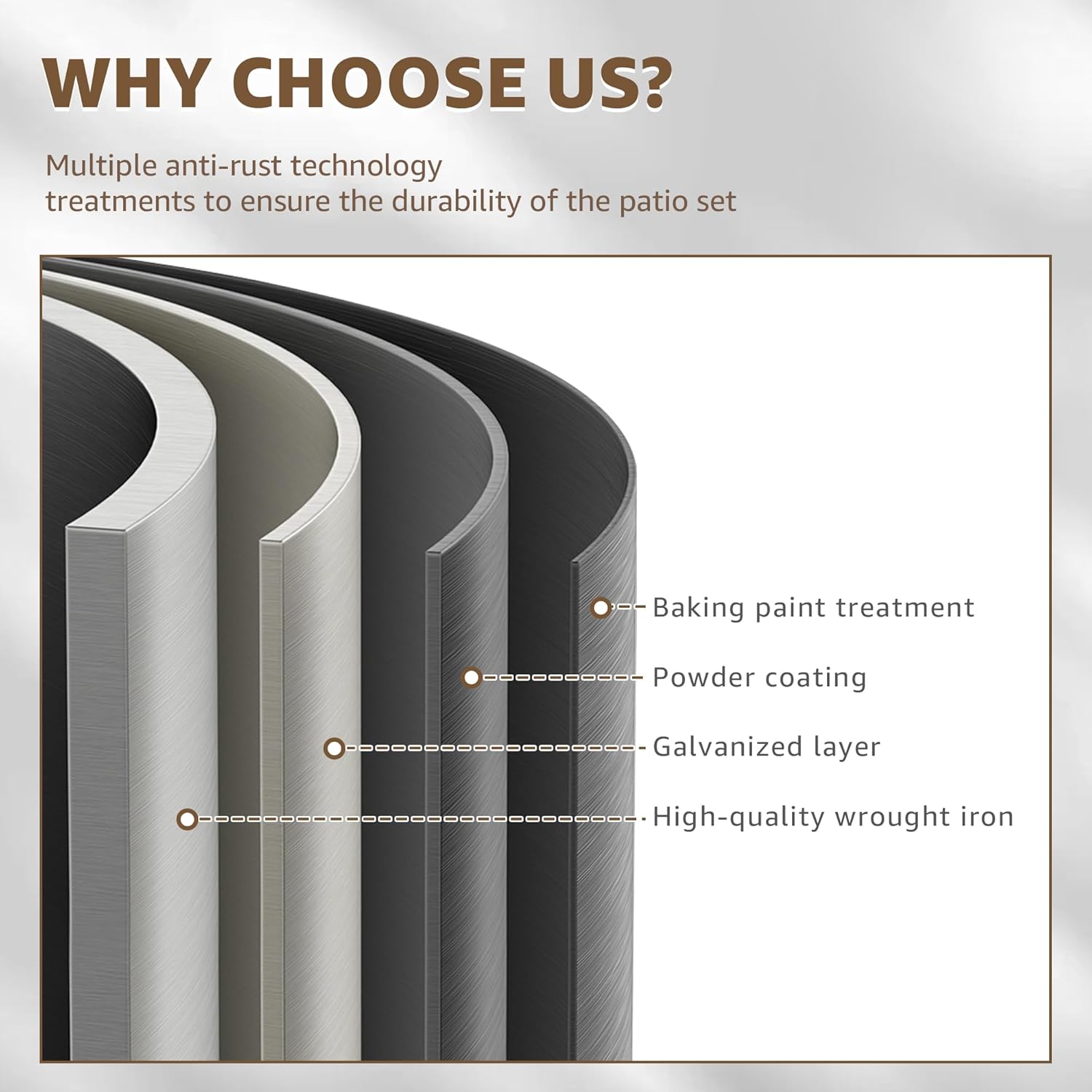 - 【Modern Unique Decor】This patio bistro set is designed to be modern and stylish,provide you a comfortable experience. The balance design of the rocking swivel chair is very good. Gently shake or rotate 360 degrees back and forth. Sway quietly to better relieve fatigue and stress, your family and friends could sit on the rocking swivel chair set and enjoy leisure time with you happliy.