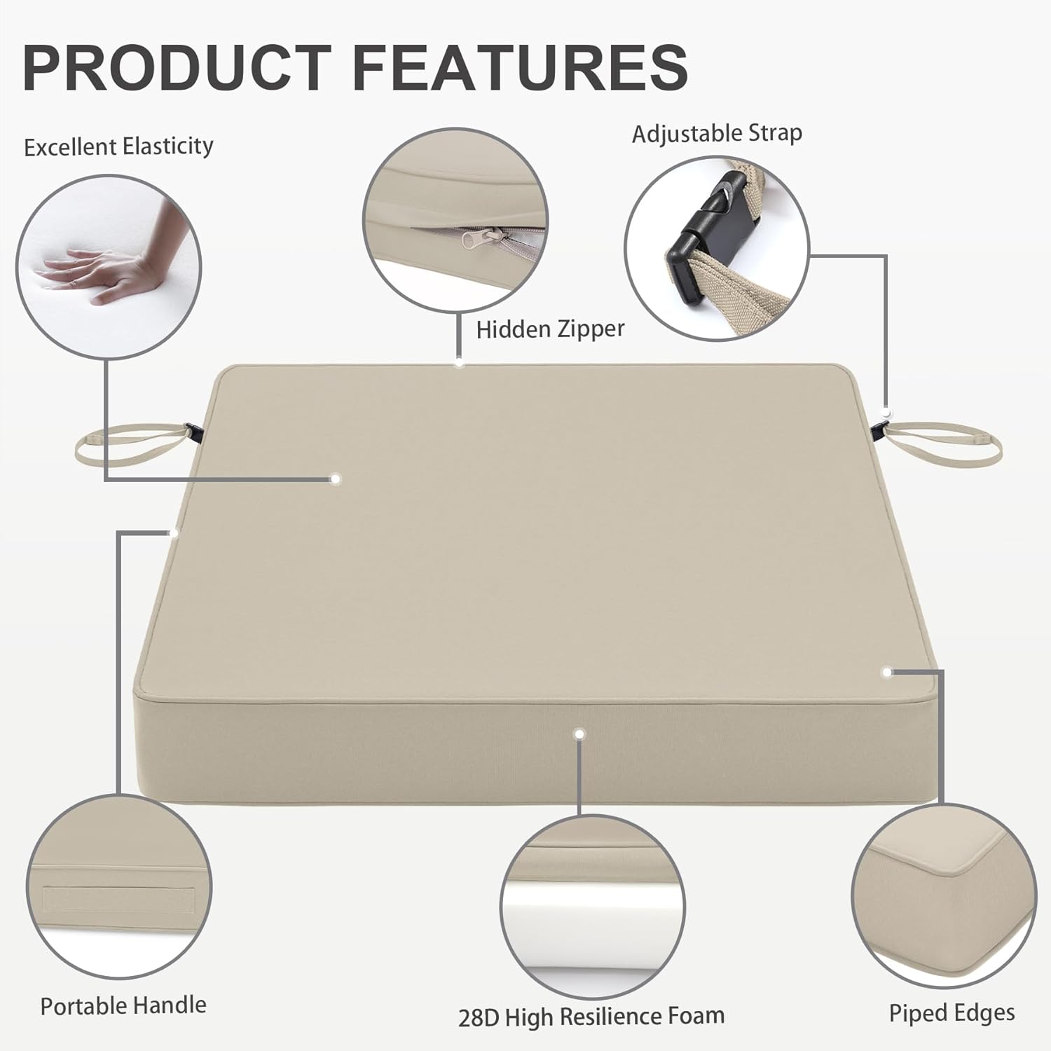 - Portable Outside Chair Cushions with Strap - Favoyard chair cushion is designed with a delicate handle and 2 adjustable straps on the both side, these click close straps keep your cushions exactly where you want them and also ensure that they look great on your furniture. And the handle ensures easy carrying.