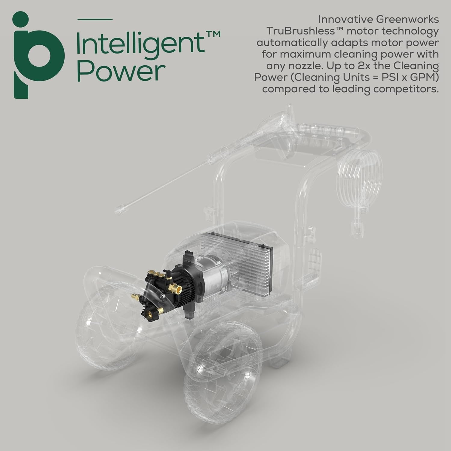 - TRUBRUSHLESS MOTOR : Powerful 14 Amp TruBrushless motor generates 3000 PSI and 2.0 GPM for maximum cleaning power.Cleaning Units 3300 C.U. Maximum Inlet Water Temperature 104°F (40°C).Frequency : 60 hz
