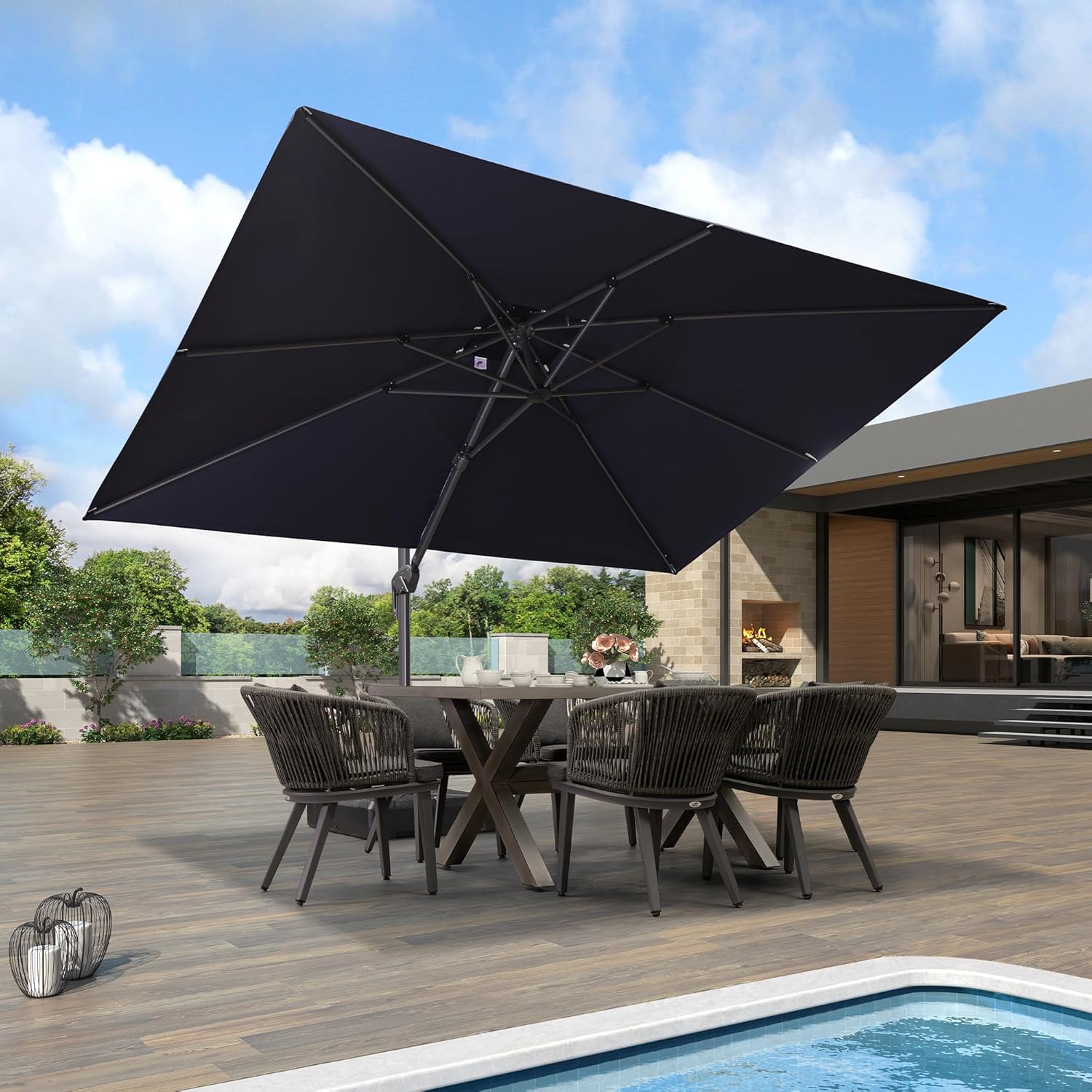 - ROTATION & TILTING: This cantilever umbrella can be rotated 360 degrees easily, in addition, the 6-level adjustable tilt operation system also makes tilting the deck umbrella effortless