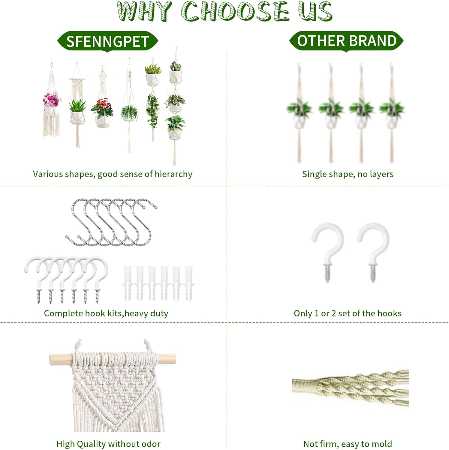 - VALUE PRESENT PACKAGE: Macrame plant hanger included six Different Sizes Crochet Plant Hangers, six“S” Hook, six Ceiling Hook, six Expansion Tube. Unique creative design, modern, retro style hanging plant add the perfect touch to your room and living room, you can hang indoor plant hangers on the ceiling in the living room, bathroom, bedroom and office. Great for indoor and outdoor décor