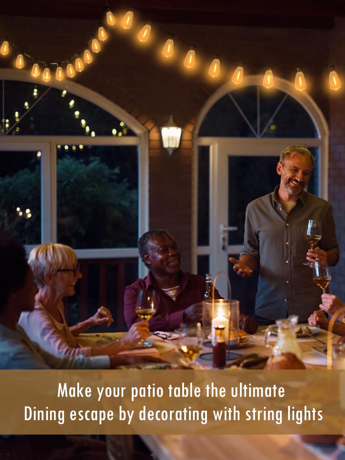 - 【Energy saving outdoor lights for patio】- Our ST38 edison LED bulb have a classic,timeless look that fits in with all styles of outdoor backyard space and events. edison string lights are a cost-effective alternative to add and lighting to your outdoor patio, Over a 30,000-hour longer lifespan, our energy-saving string lights will not only provide brighter lighting but also cut down 90% of your electricity bills compared with incandescent ones.