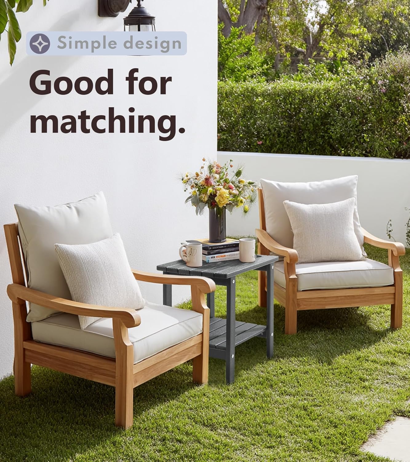 - 【Durable Material & Weather Resistant】The patio side table are made of sturdy and waterproof material HDPE, which is more weather resistant. The outdoor side tables can withstand a range of severe weather conditions like burning sun, strong wind or heavy rain yet retain the original color for years to come, never fade, rust, peel and rot.