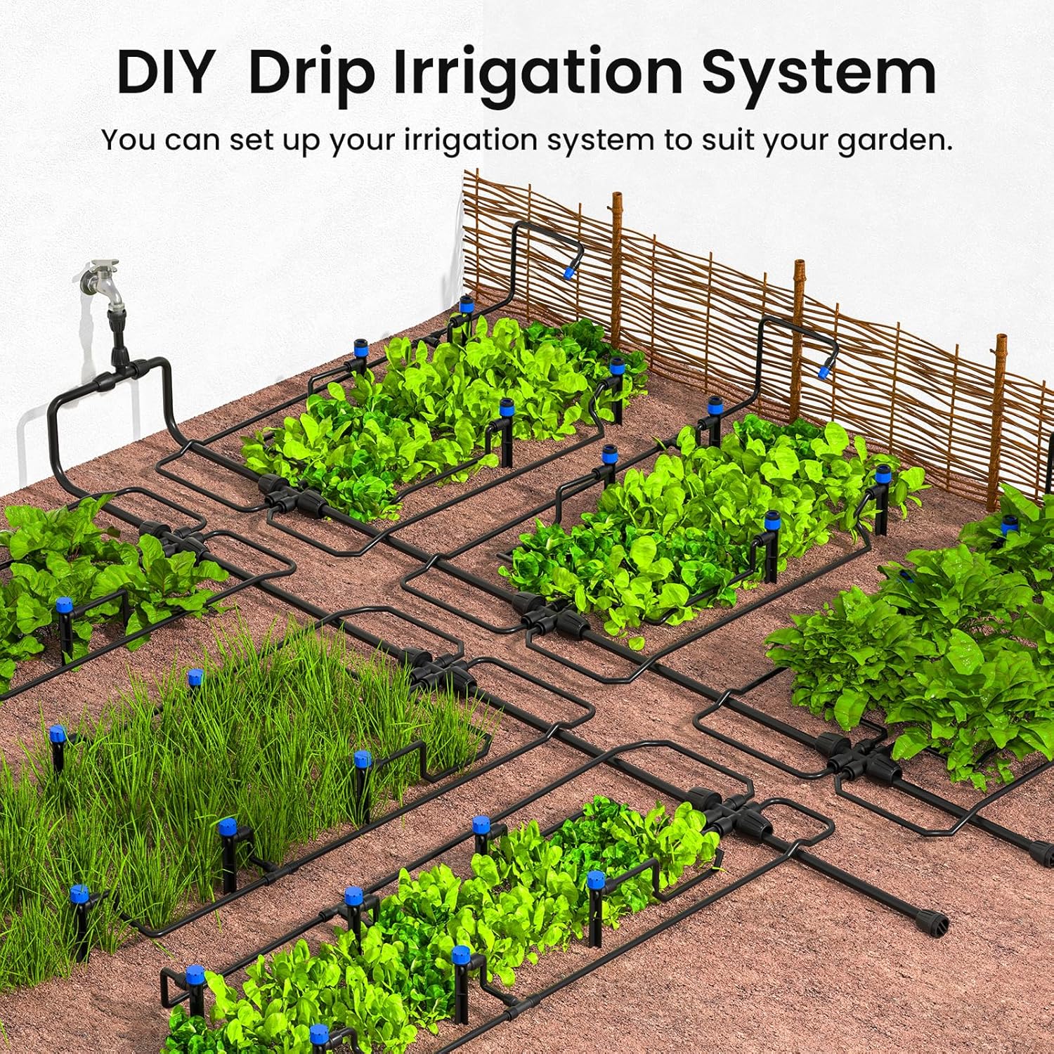 - ✔Innovative Quick Connector Technology:Featuring a new quick connector design, our plug-and-play irrigation tube ensures a secure fit, preventing leaks and making installation a breeze.Takes only 10 minutes from setup to full operation, saving you time and effort.
