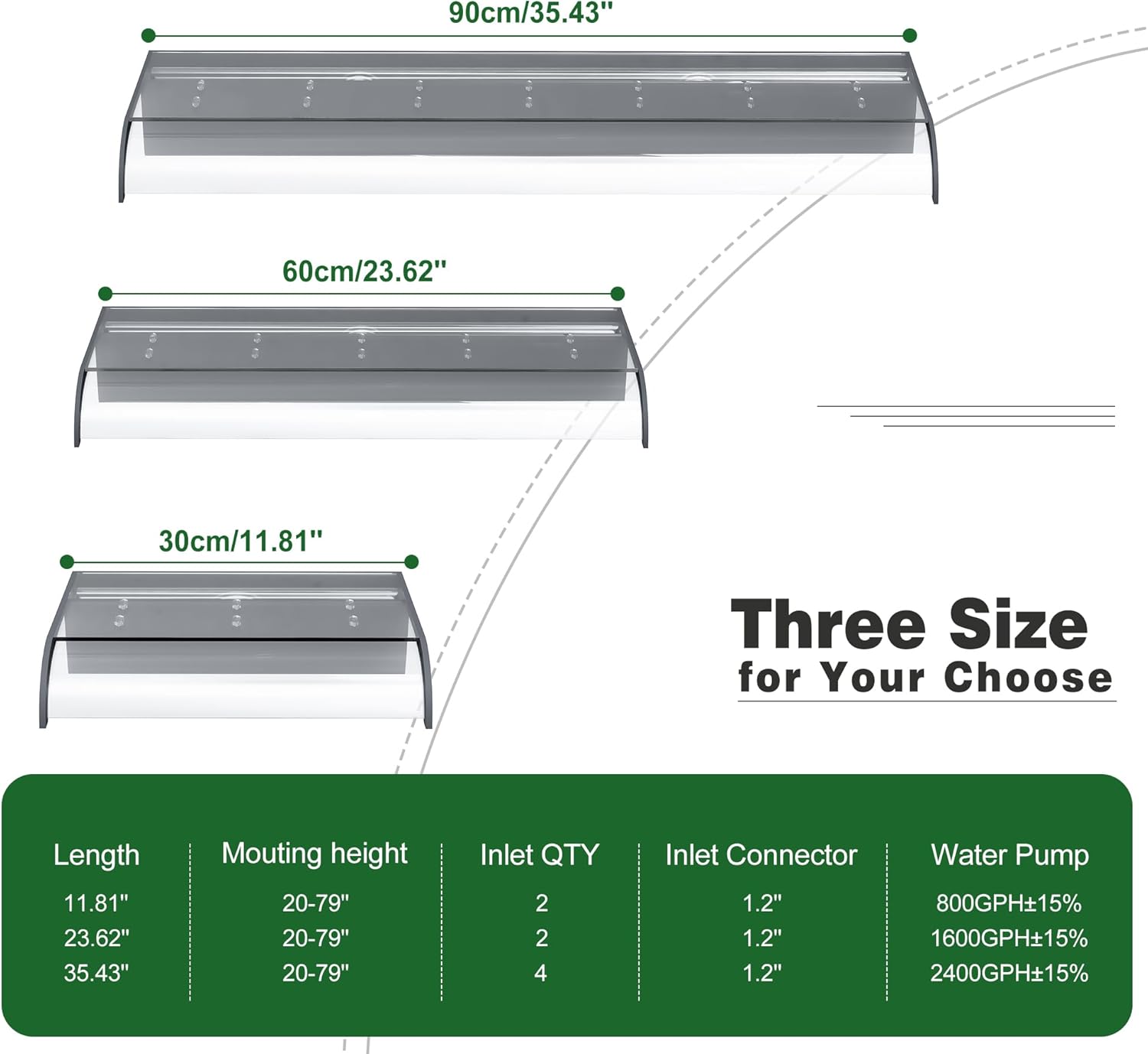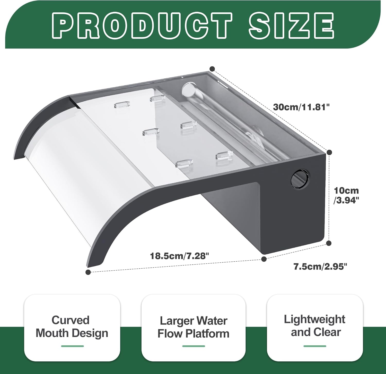 - 【Updated Curved Open Lip】- Unlike other narrow, short waterfalls, our updated pond waterfall features an integrated 8-inch wide water platform and 4-inch high water storage tank platform, and curved open lip. This wider, longer design creates a stable, smooth stunning water flow, so you can better enjoy the soothing sights and sounds of the cascading water. Waterfall does not include LED lights. Purchase them in our store.