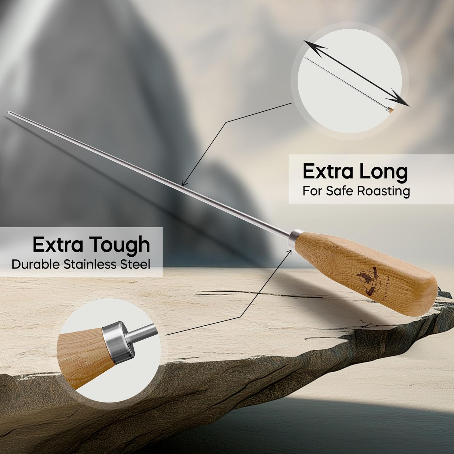 - π‘οΈ RUST-PROOF WITH WOODEN HANDLE: Made from stainless steel, these marshmallow skewers are built to resist rust, corrosion, and heat, ensuring safe roasting. The smooth hardwood handle provides a firm grip, protecting against accidental burns or exessive heat on your hands.