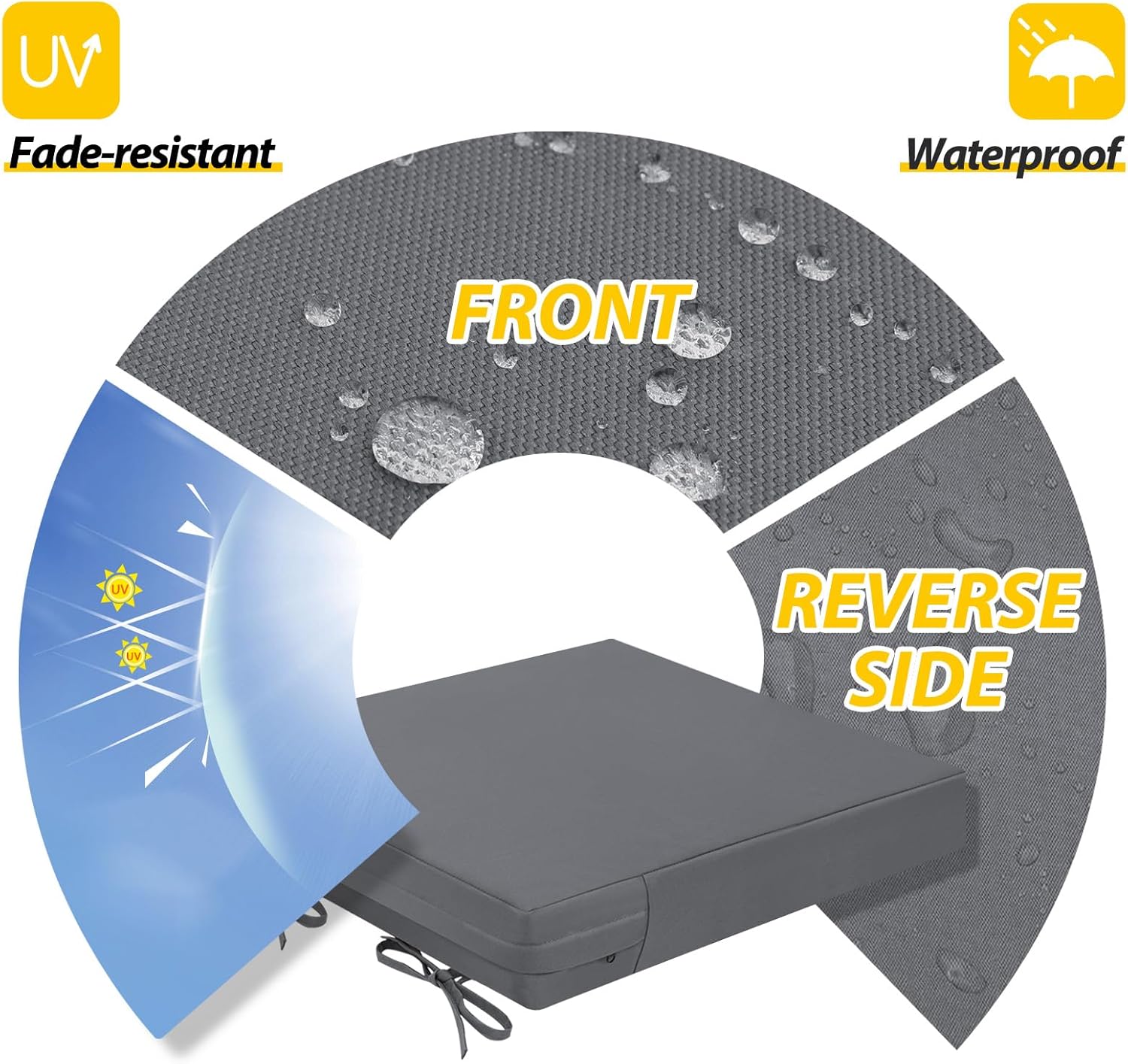 • Waterproof & Removable Cover: Durable, breathable polyester with a waterproof coating, UV protection, and fade resistance for lasting outdoor use. The zippered cover allows easy cleaning and replacement, with hidden zippers for a seamless look