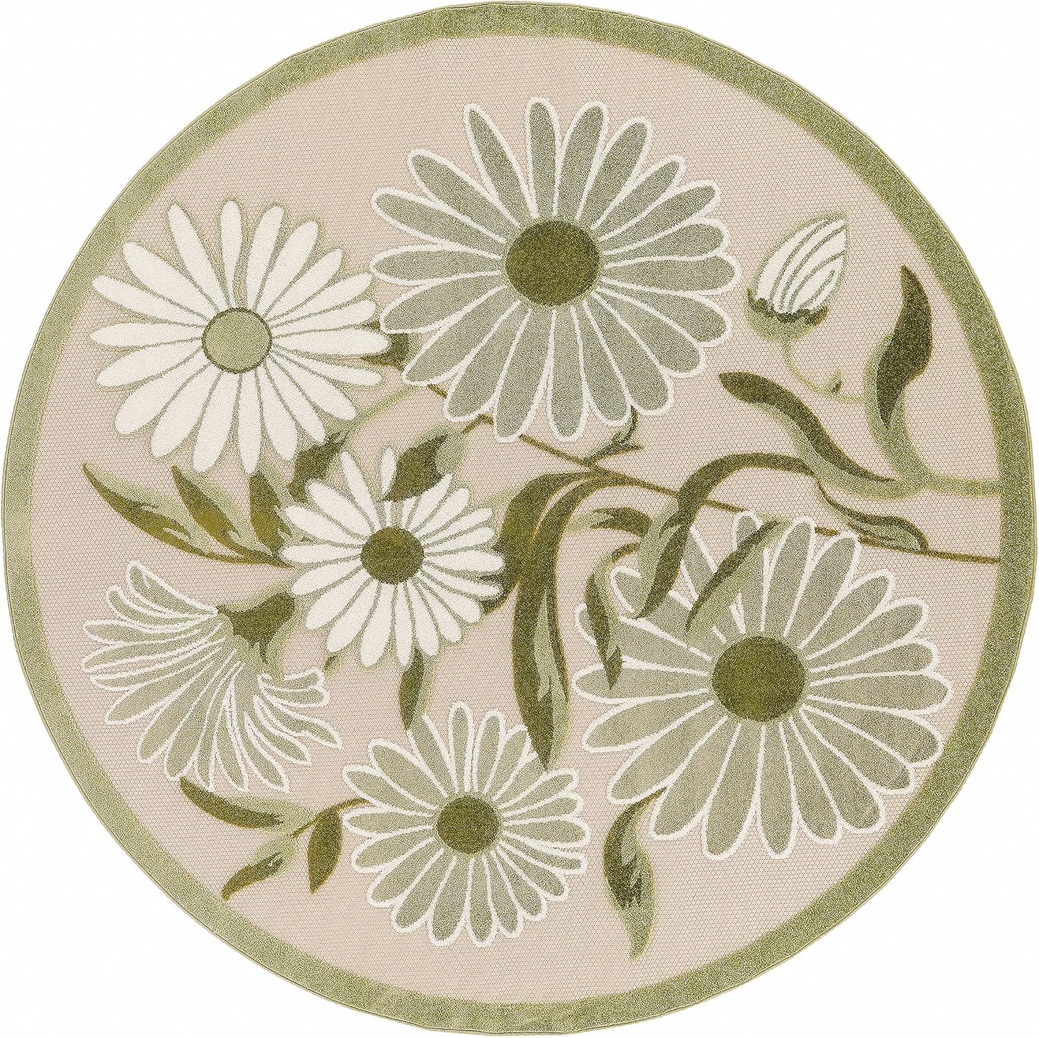 Nourison Home Aloha Indoor/Outdoor Ivory Green 5'3" x Round Area Rug, Easy-Cleaning, Non Shedding, Bed Room, Living Room, Dining Room, Backyard, Patio, Deck (5 Round)