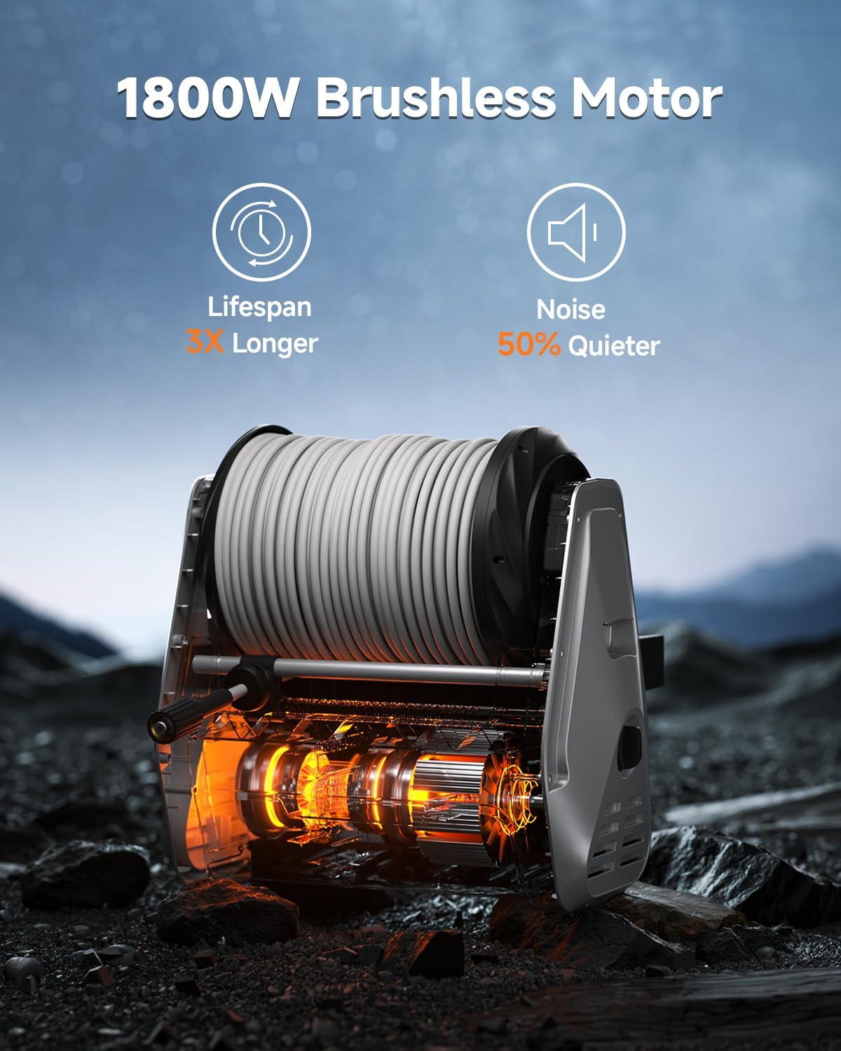 - Long-lasting Brushless Motor: Library-quiet operation at industrial power! Advanced brushless technology reduces noise by 42% (68dB) while extending motor life to 1000+ hours. The graphene cooling system maintains optimal temperature even during 4-hour continuous use. Wash at dawn without neighbor complaints – this might be the last pressure washer you’ll ever buy.