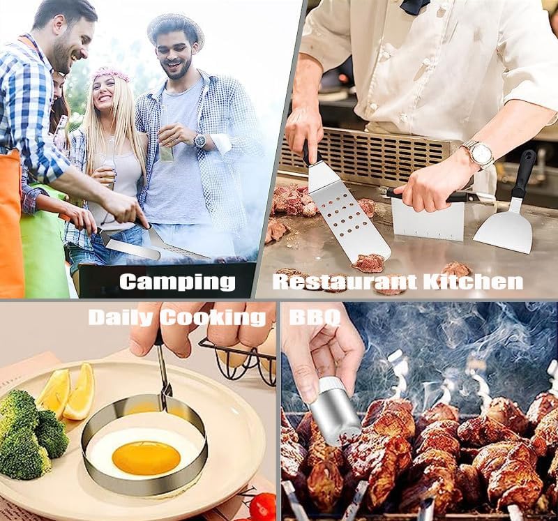 - 【Great Gift Choice】This practical barbecue tools set with beautifully designed storage bag and gift box is ideal gift choice for Fathers Day, Thanksgiving or Christmas. The 149 pcs chef's choice griddle accessories kit is a good tool set for yard, outdoor, and camping barbecues, an ideal gift for friends, lovers, or family members who loves cooking or barbecue.