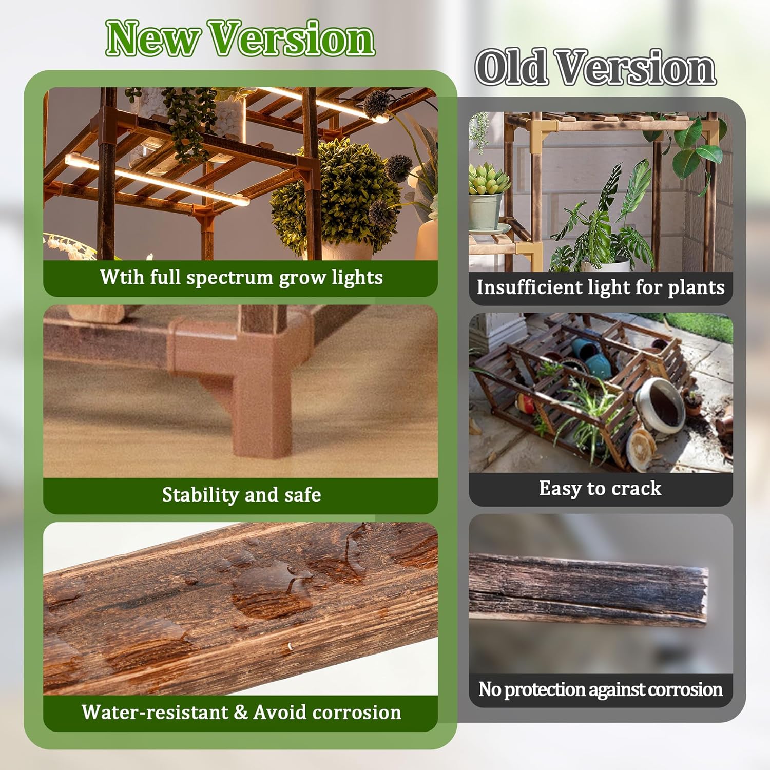 - [12-Tier, 63" Elevated Plant Stand] This 63" plant stand indoor features 12 pot stands. Our planter stands for indoor plants space-saving design with small footprint, making full use of vertical space in unused corner areas. Plant Stand with Grow Lights the staggered design offers enough space for different kinds the even gap makes them get enough air and sunlight