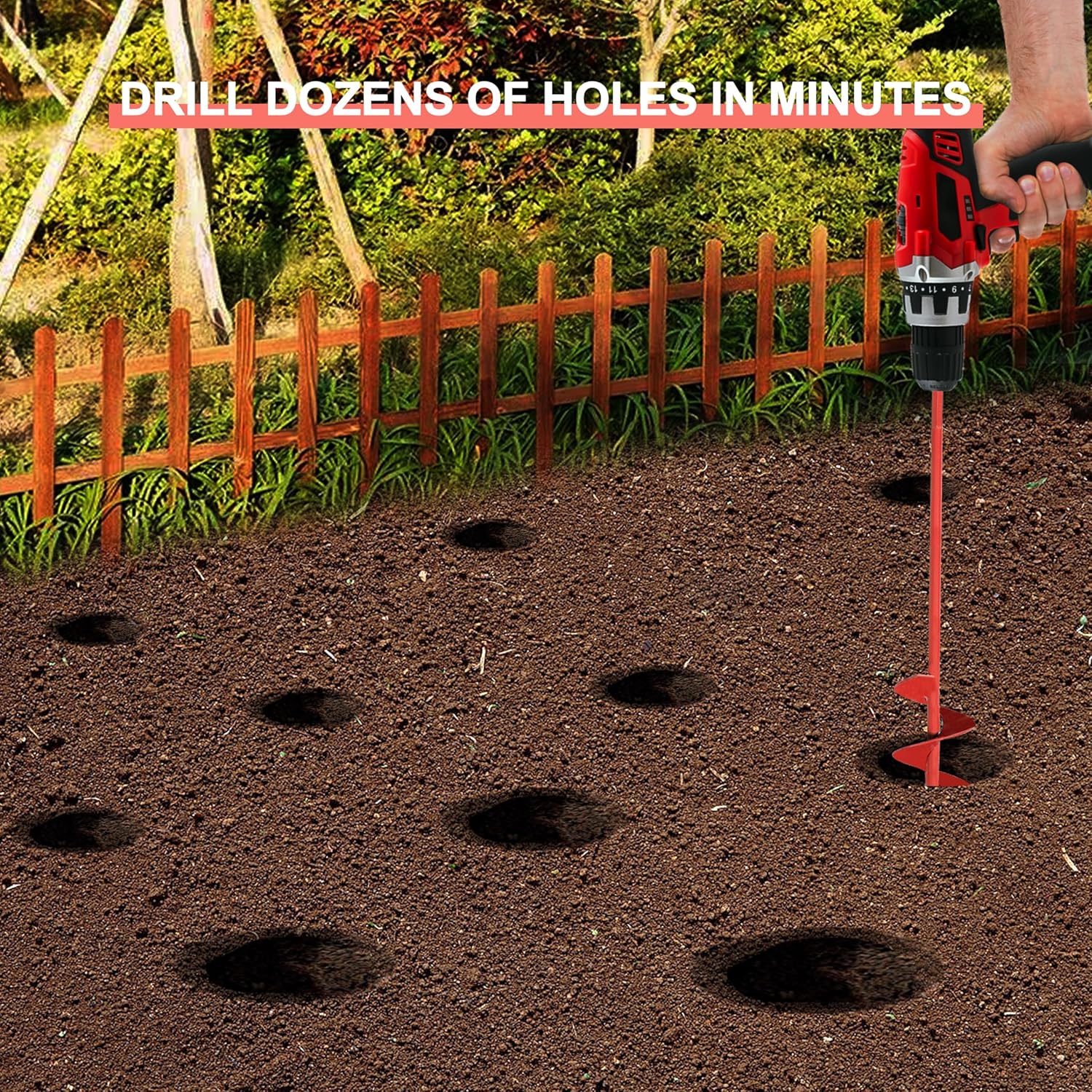 - Easy to Use: You can easily use this garden auger even don't know the ABCs of planting. All you need to do is attach the auger bit to a standard 3/8" hex bit drill and then start digging. In just a few seconds, a perfect drill will be born!