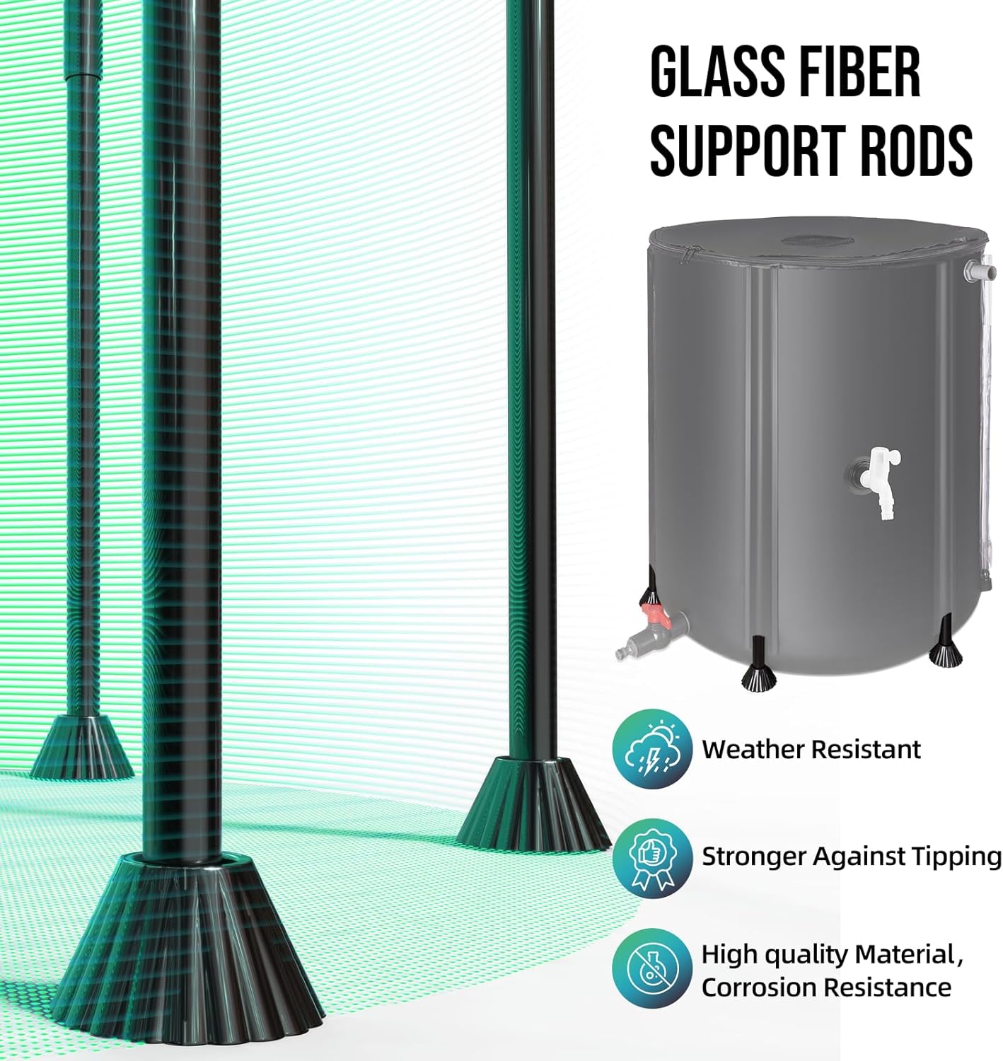 - 【Durable and Sturdy】Crafted from durable 500D 3-ply PVC materials, our Rain Water Collection Barrel are engineered for enduring strength, capable of withstanding the harshest elements.For added stability, our Rain Barrels to Collect Rainwater from Gutter feature stiff fiberglass rod, effectively eliminating any wobbling or tipping issues.