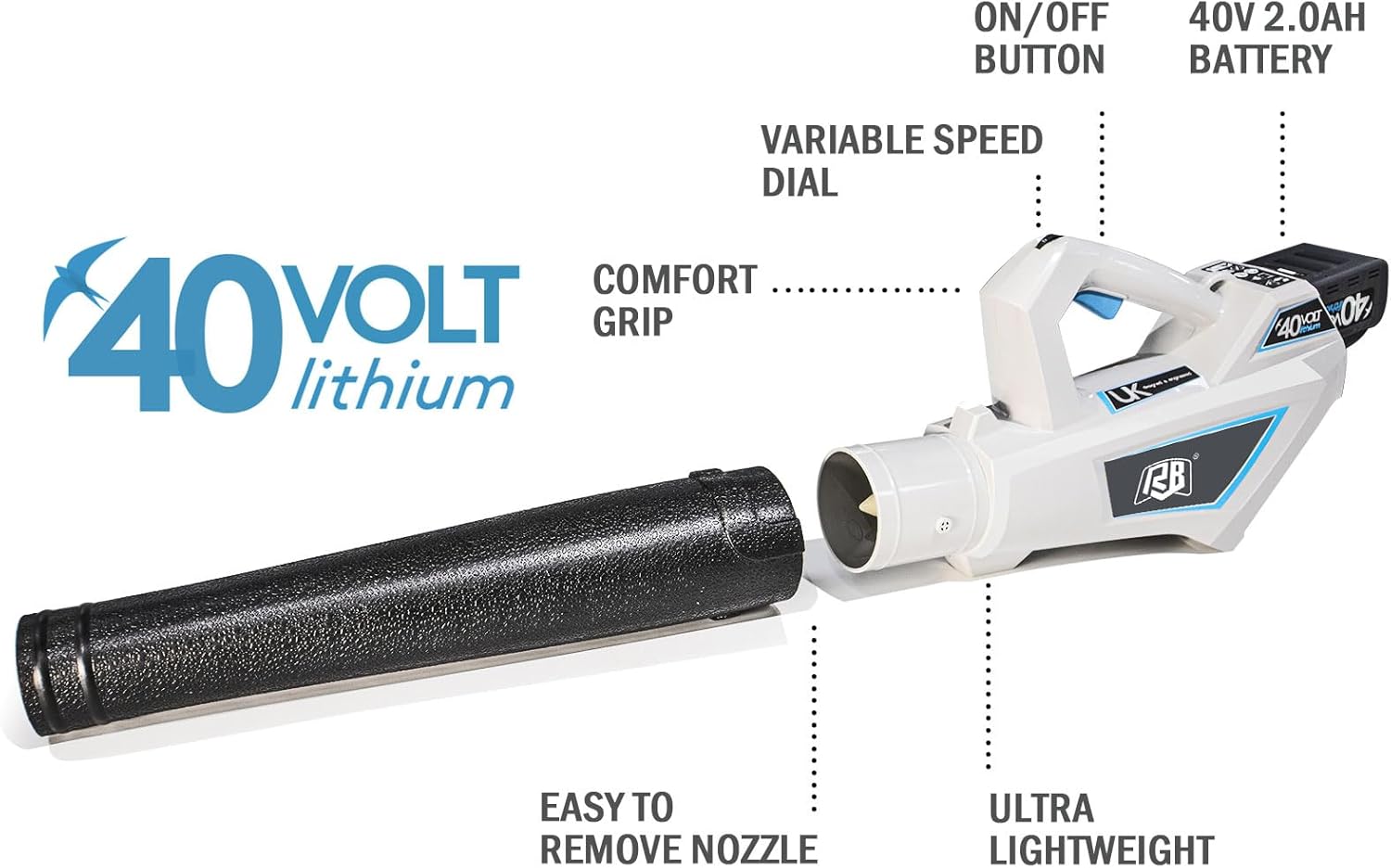 RB 40V Cordless Leaf Blower with 2Ah Battery & Charger – 6-Speed Turbo, 460 CFM, Lightweight for Leaves, Snow, Lawn & Patio