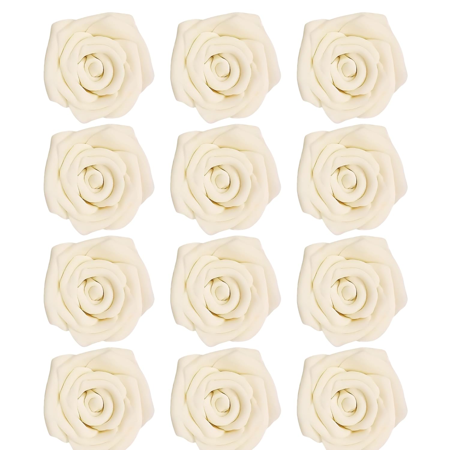 Confect Edible Ivory Rose Toppers – 12-Pack Classic Pearl Edible Roses for Cake, Cupcake Decorating – Elegant Floral Toppers for Desserts- Vegan, Nut-Free, Soy-Free, Dairy-Free, Palm Oil-Free