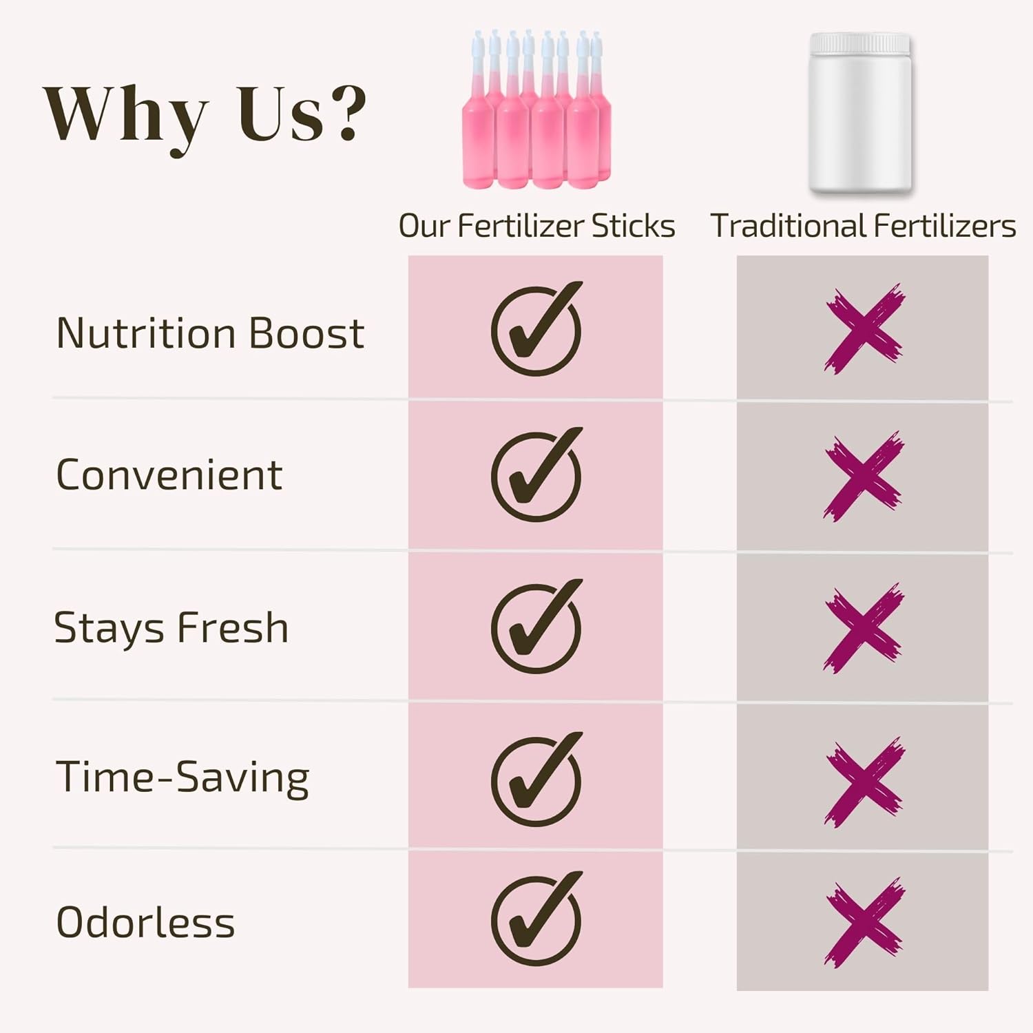 - STICK & FORGET: Say goodbye to the hassle of mixing or measuring. Our liquid orchid food spikes offer a straightforward solution, making it the simplest fertilizer for orchids that’s effortless and mess-free.