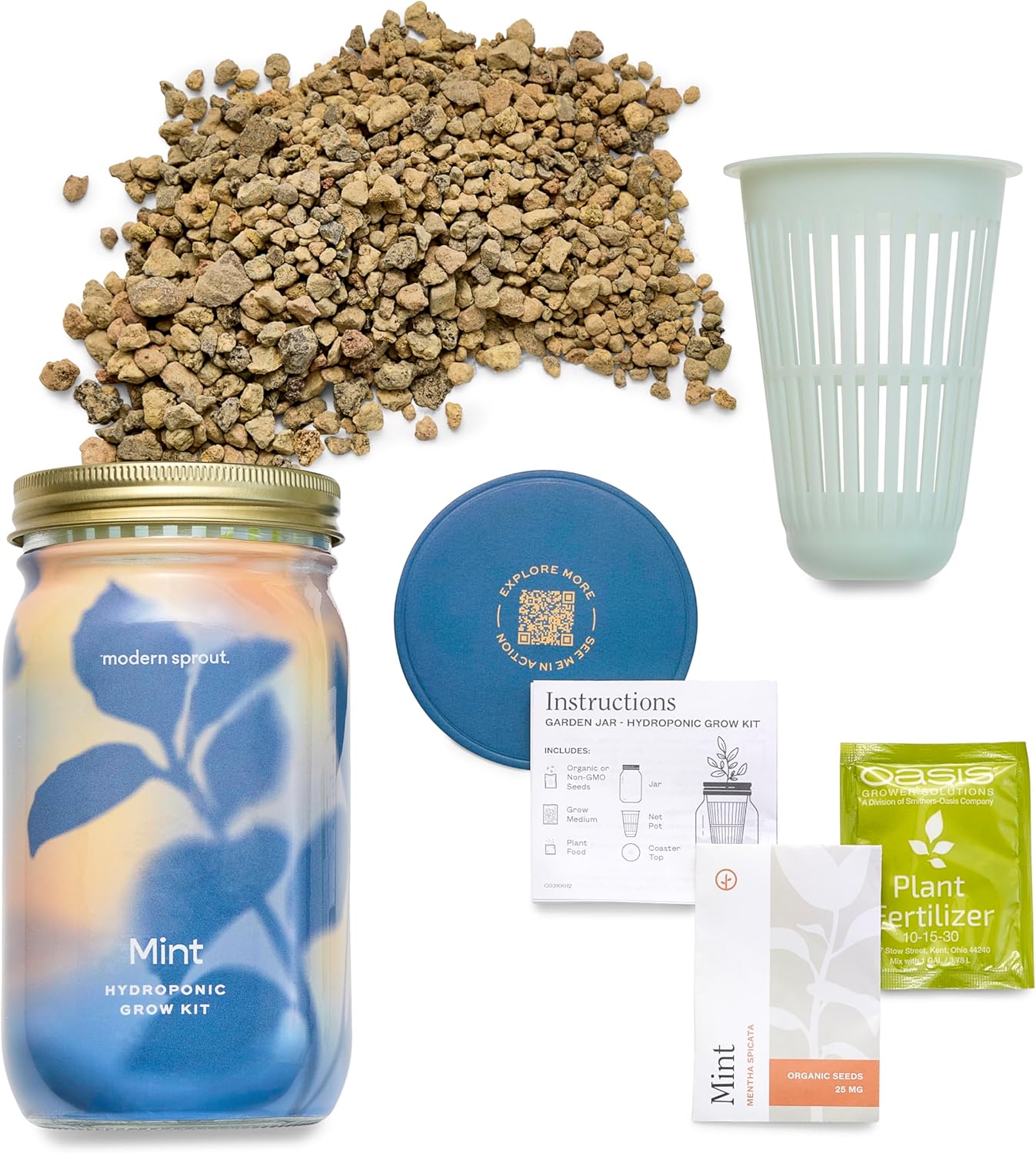 - Easy Hydroponic Growing: Grow fresh mint easily in your indoor herb garden using the self-watering hydroponic Garden Jar; Simply add water, drop in the included organic mint seeds, and place the jar in a sunny spot; Seeds sprout within 5 to 10 days and are ready to harvest in 2 to 3 months; No soil, no pests, no transplanting - just healthy, nutrient-rich herbs all year round; And with our Thrive Promise, we’ve got your back if your plant doesn’t flourish