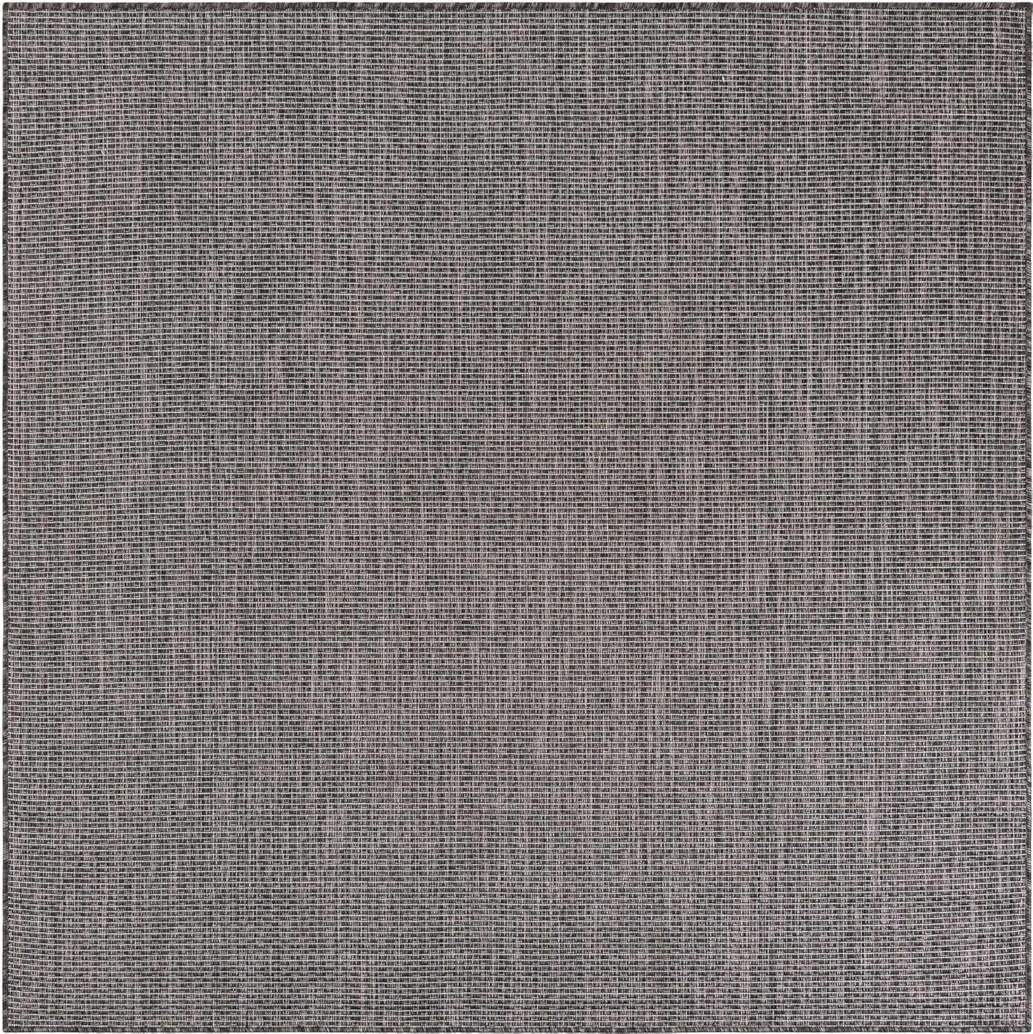 Unique Loom Outdoor Solid Collection Area Rug (6' 1" Square Black/Ivory)