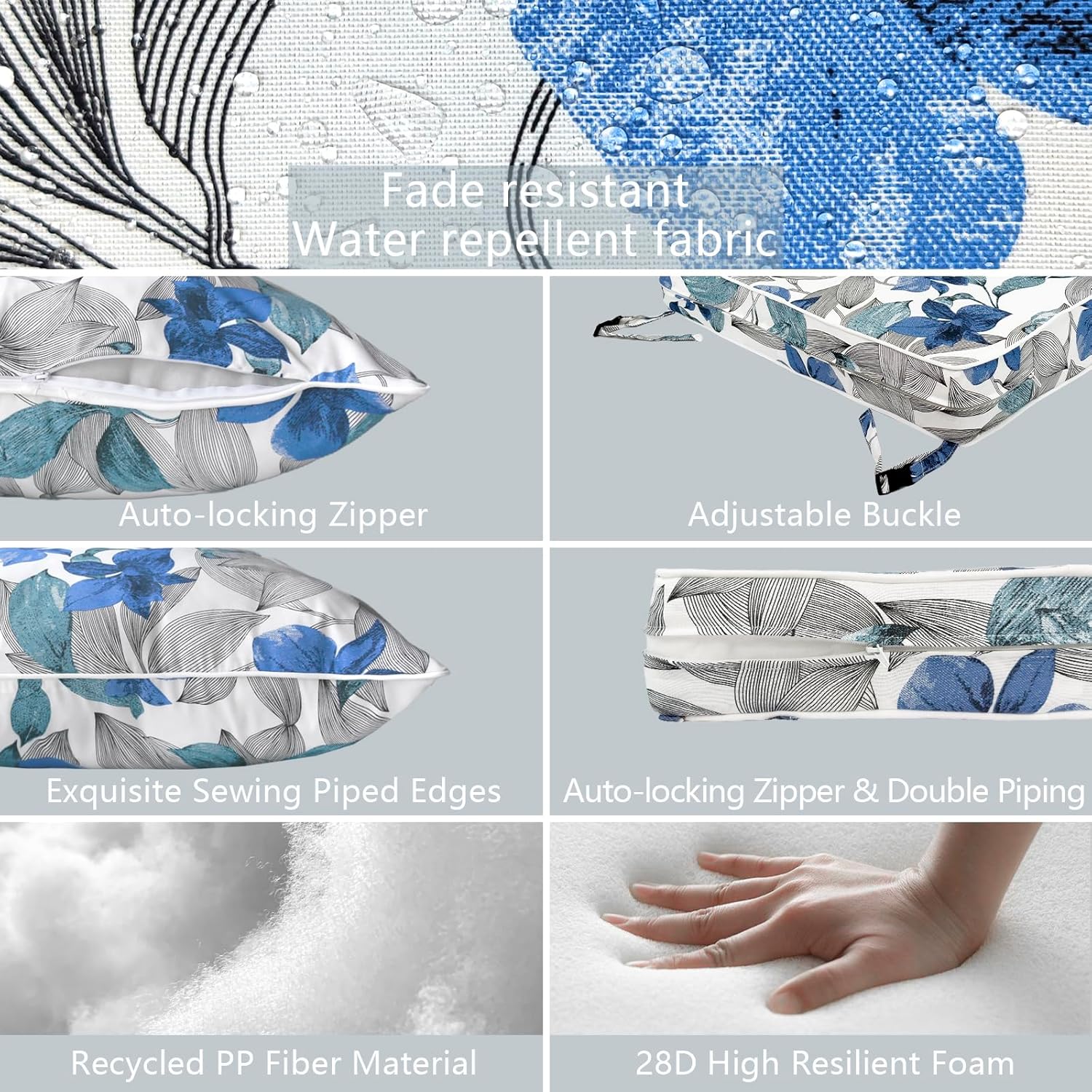 • ⭐Material: Made of 100% durable polyester fabric and soft filling material. It’s water repellent and fade-resistant. Won’t fading under the direct sunlight over 500 hours. Cushions are filled with 28D high resilient foam, overstuffed construction for enhanced comfort and longevity.