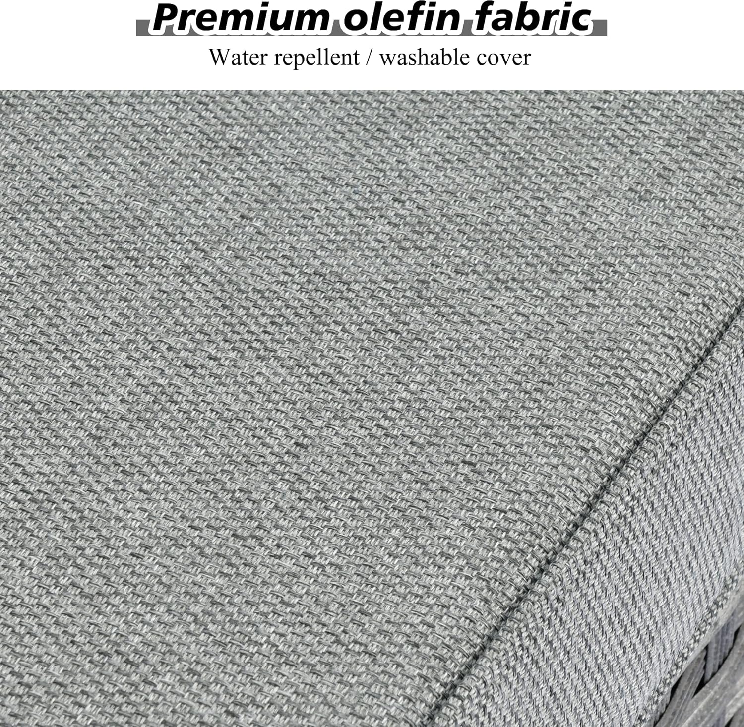 • Weather Resistance: PE strengthen wicker UV treated for long lasting. Cushions with yarn dyed woven cover features with UV-resistance, water drops/spilt resistance and good ventilation, resists water drops, coffee spilt. Unlike cheaply made thin print fabric, yarn dyed woven fabric got beautiful texture
