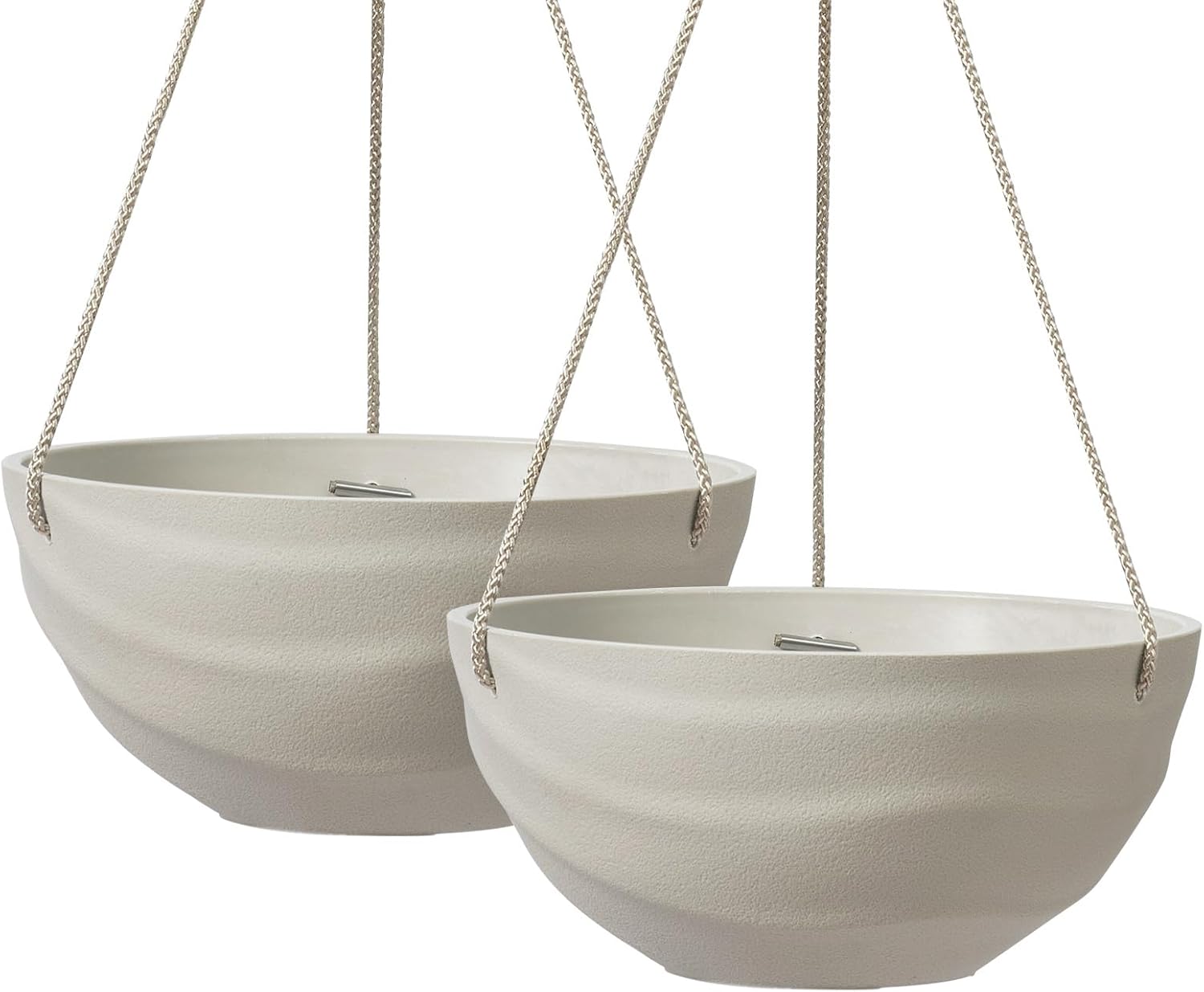 - SPECIAL PATTERN HANGING PLANTER SET - Elevate your living spaces with this sophisticated hanging planter set. Each 1-gallon planter (10"Upper D * 4.7"H * 4.1"Bottom D) showcases a unique, ridged spiral pattern on a stone-textured surface, adding a chic and elegant touch to any decor.